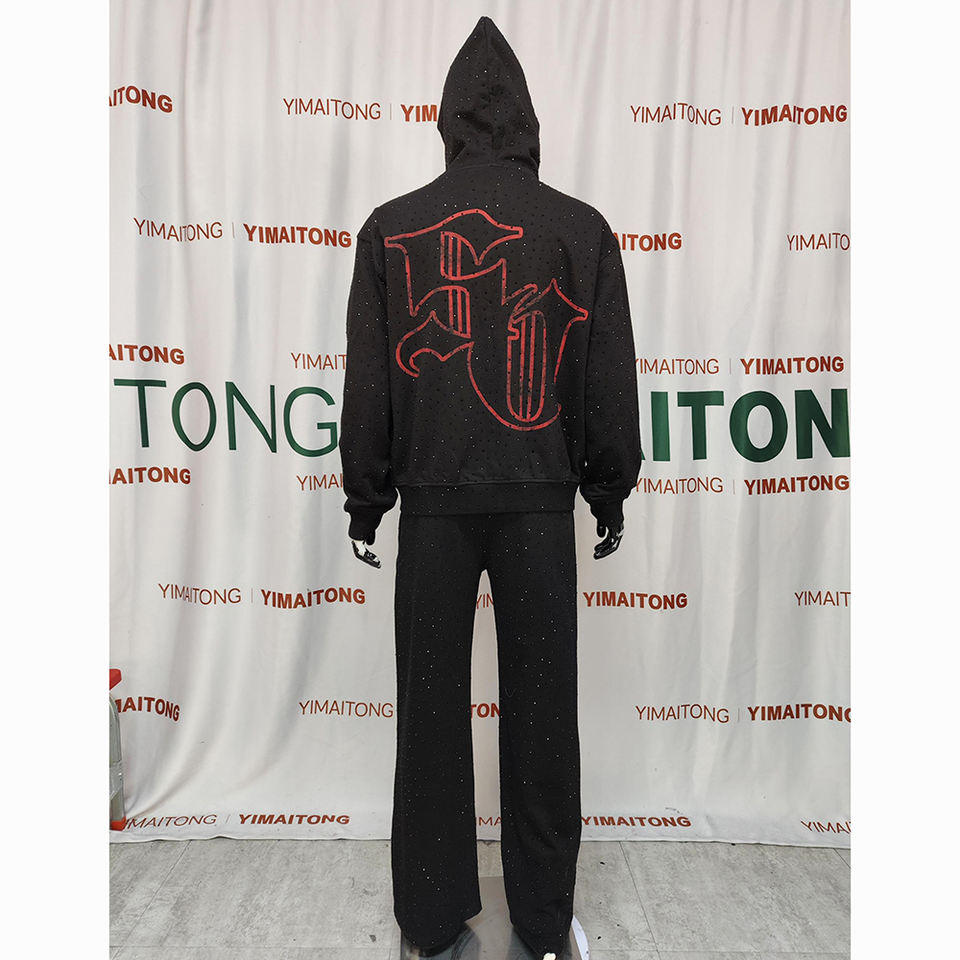 Ensembles de pantalons de survêtement à capuche zippés en deux pièces avec logo personnalisé pantalons décontractés de haute qualité strass survêtement lavage pour hommes survêtements
