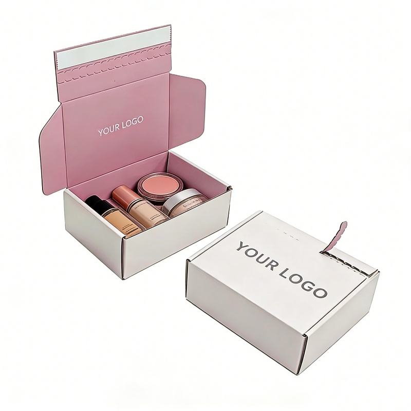Boîte en carton ondulé blanc de 2 mm avec impression UV de logo personnalisé pour cosmétiques, à ouverture facile et épaissie