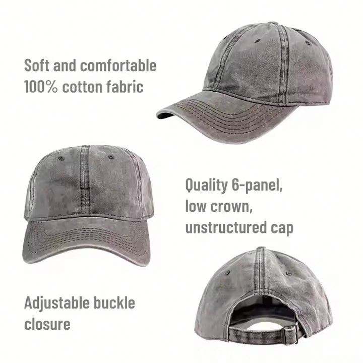 Casquette de baseball unisexe personnalisable avec logo, ajustable, unie, 100% coton lavé, sergé brossé, effet vieilli et délavé