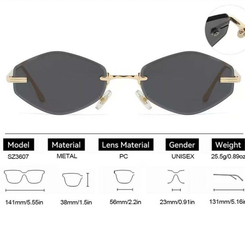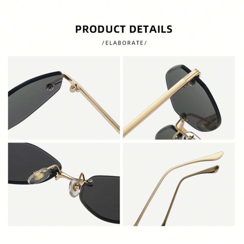 Lunettes de soleil carrées sans monture unisexes avec logo personnalisé, protection UV400, en métal, tendance 2026