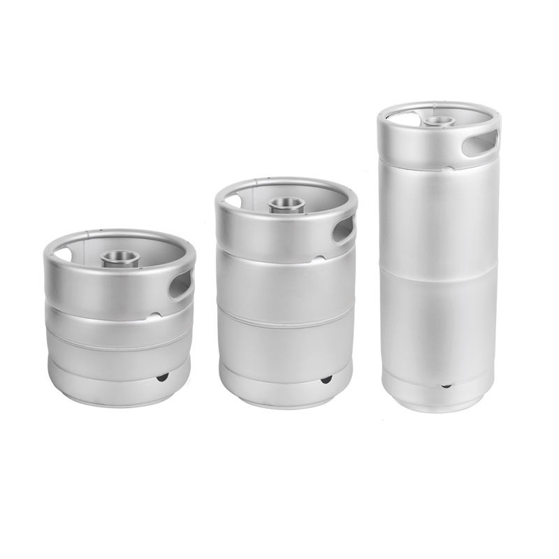 Fût à bière en acier inoxydable empilable personnalisé avec logo, 5,23 gallons, 1/2 BBL, norme américaine, argent, épaisseur 2,4 mm, avec raccord