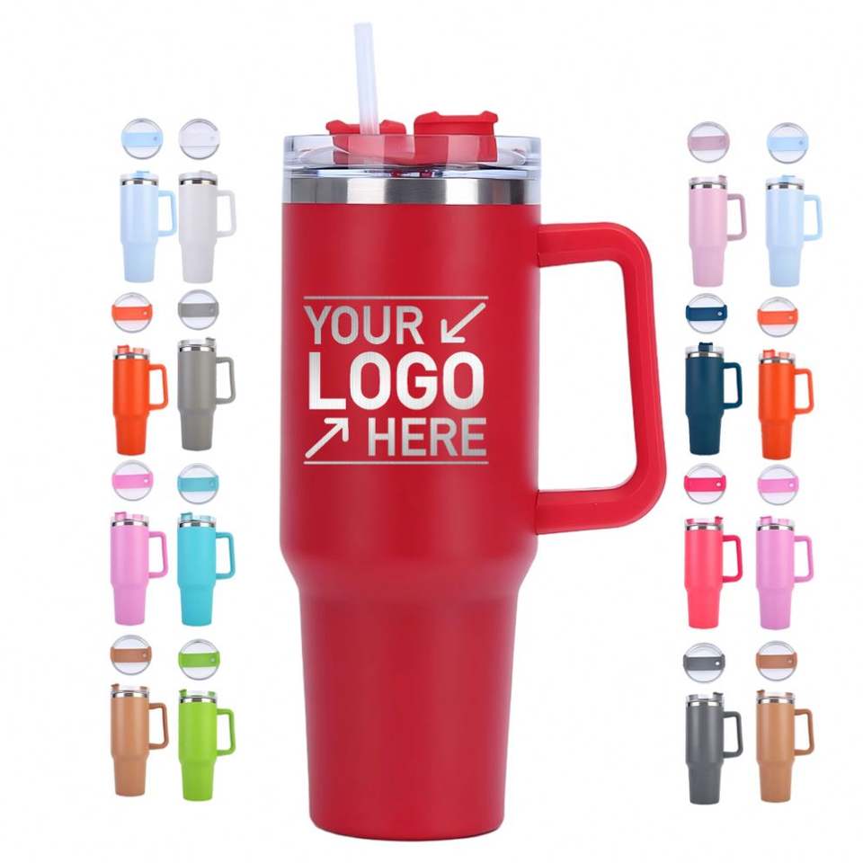 Mug de voyage isotherme personnalisé avec logo, 1200 ml, double paroi, en acier inoxydable, vente en gros, gobelet de 40 oz avec poignée