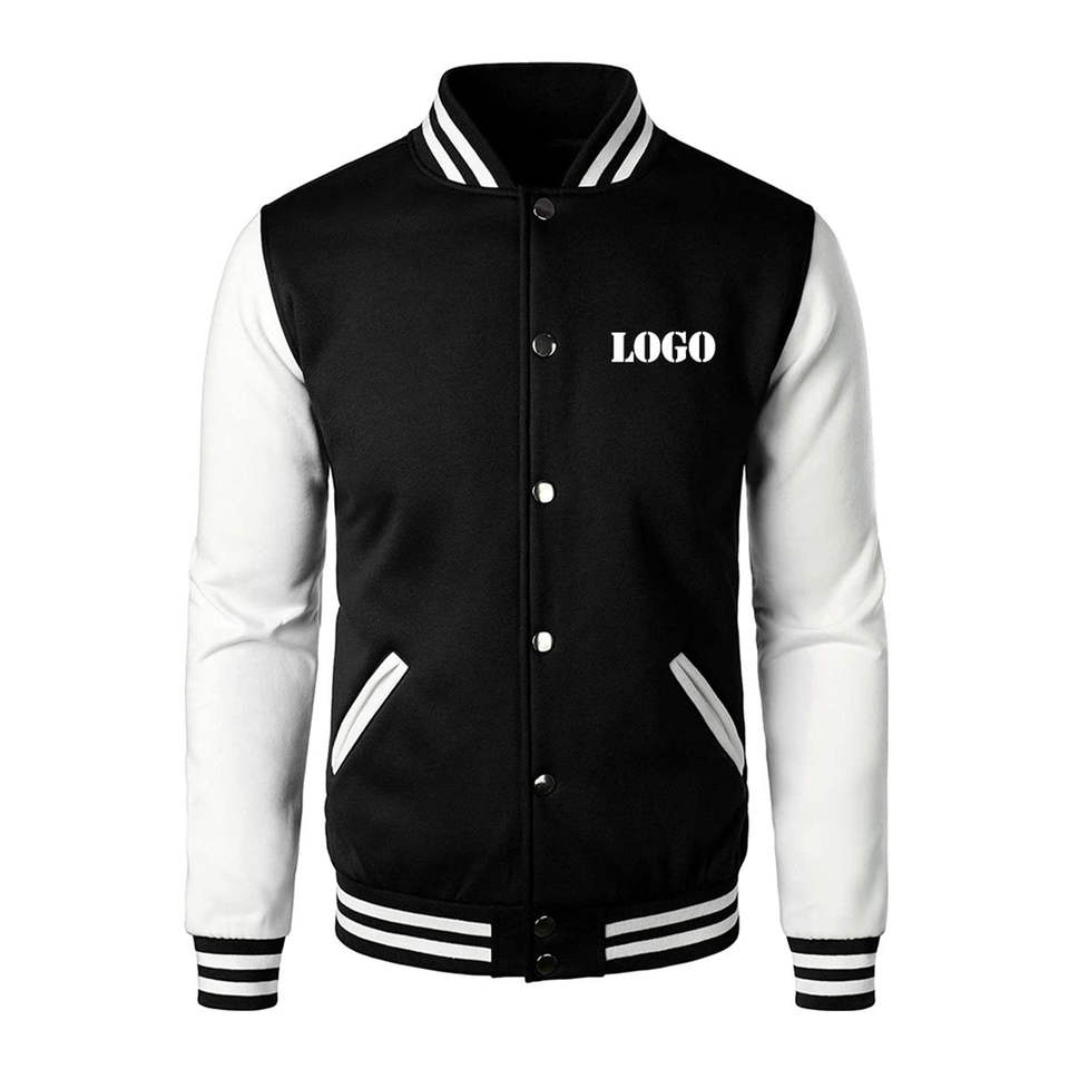 Veste universitaire personnalisée avec logo, manches en cuir, broderie noire, veste de baseball pour couple, veste universitaire pour homme, veste Letterman