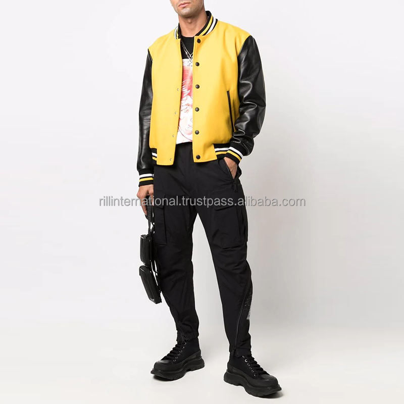 Veste universitaire personnalisée avec logo, veste de baseball en laine et manches en cuir pour hommes, vente en gros