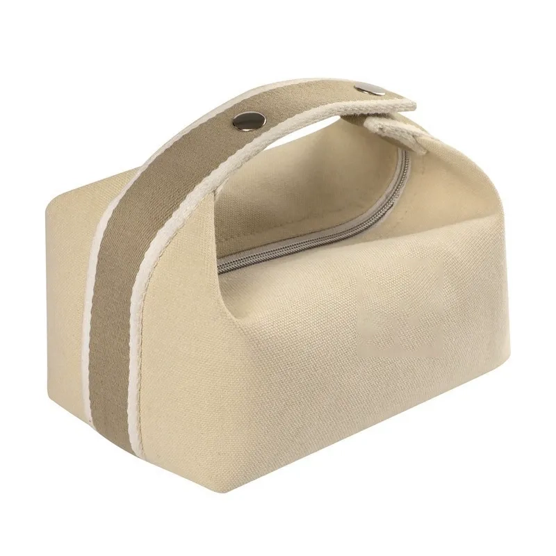 Pochette de maquillage de luxe en toile vintage avec logo personnalisé, fermeture éclair douce, élégante pour organiser les produits de soin pour femmes, utilisation en voyage