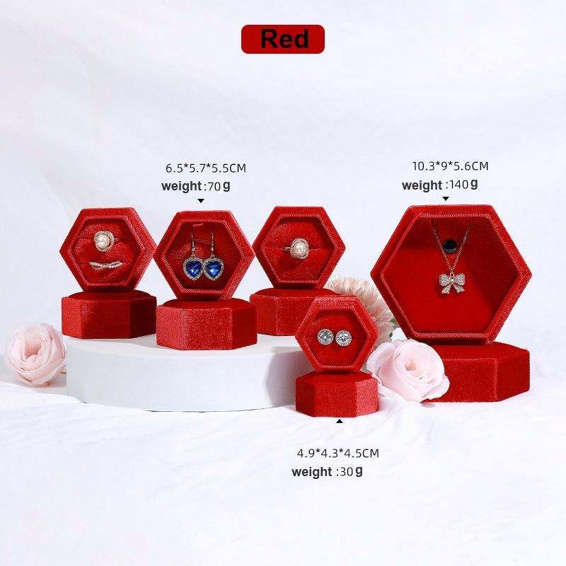 Nom du produit:Boîte de bague en velours côtelé unique hexagone de mariage de fiançailles