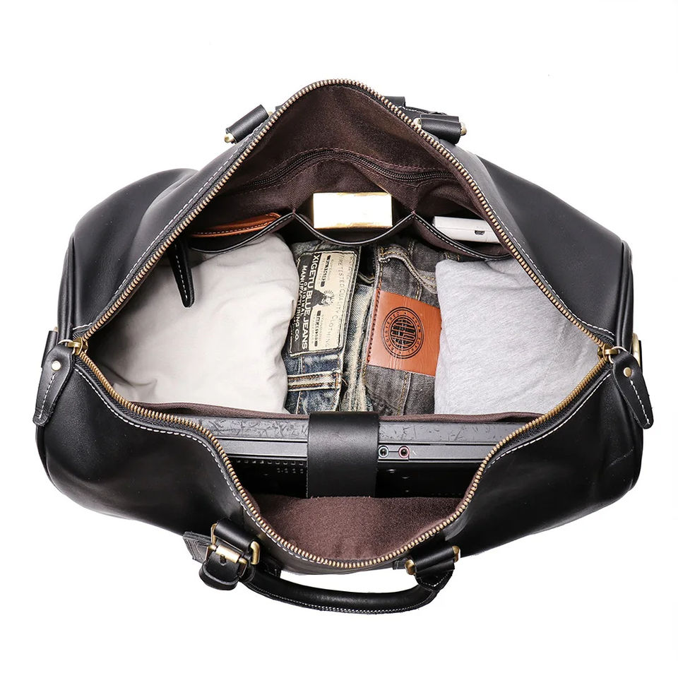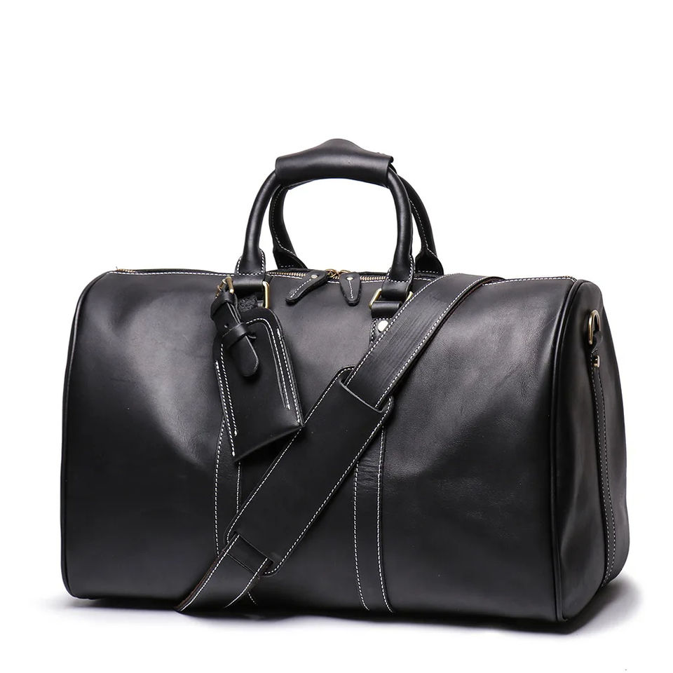 Sac de sport en cuir vintage avec logo personnalisé pour hommes sac de voyage portable pliable avec fermeture à glissière grande capacité