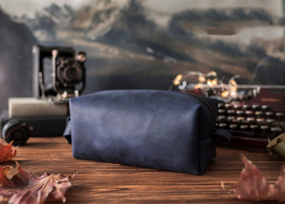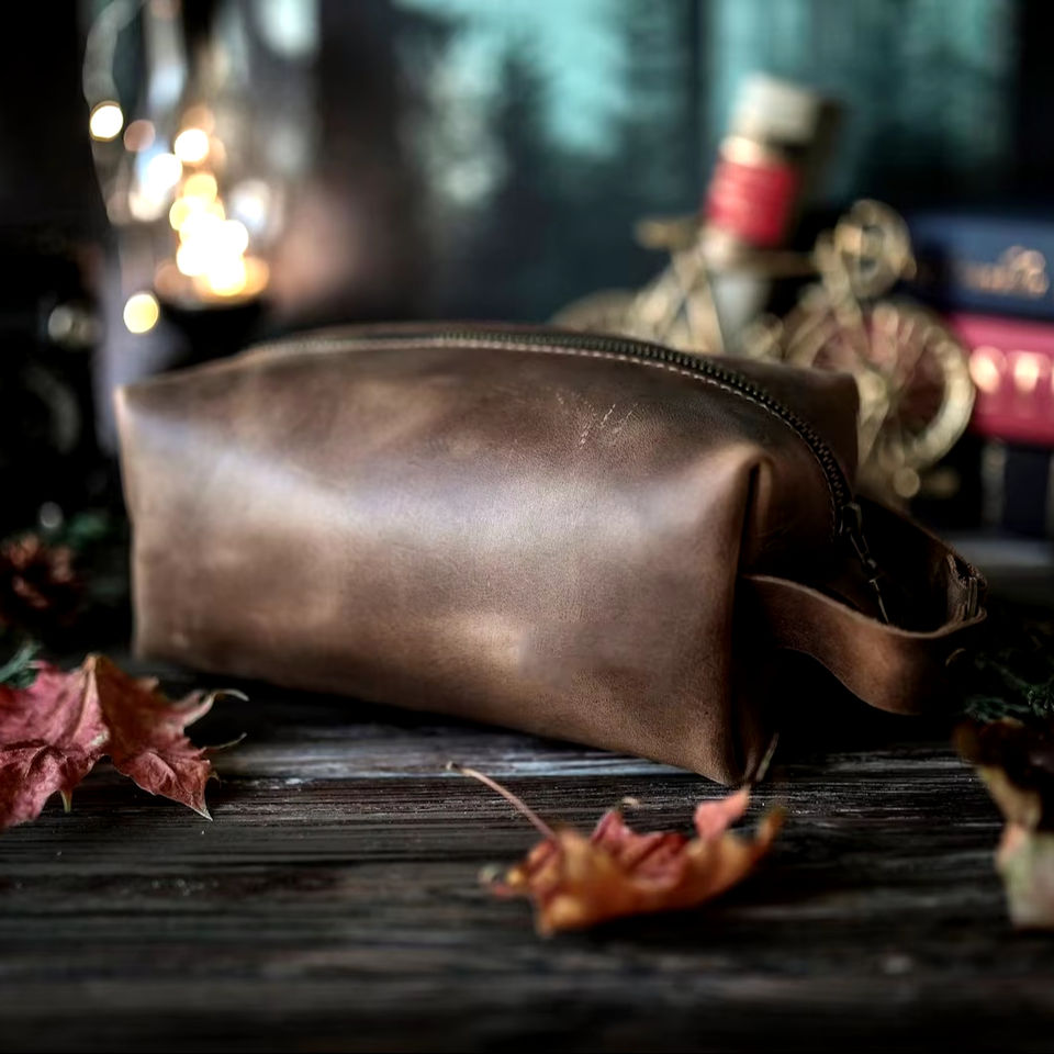 Trousse de toilette en cuir véritable