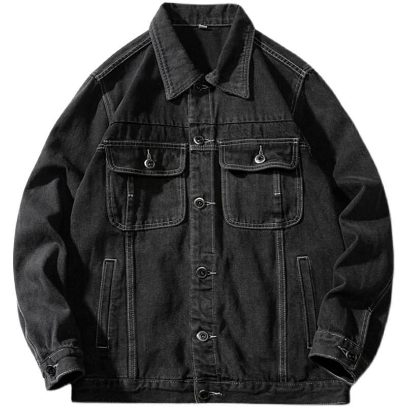 Logo personnalisé Vintage Wash déchiré noir Jean Veste pour hommes Veste en jean surdimensionnée avec fermeture éclair Fabricant OEM Service disponible
