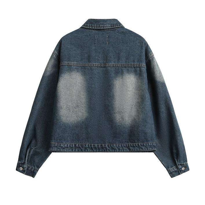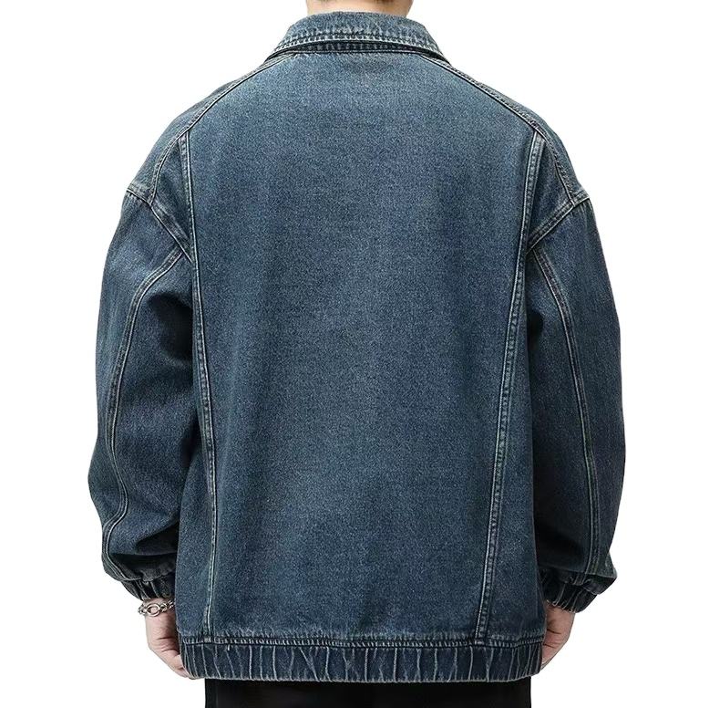Logo Personnalisé Vintage Wash Déchiré Noir Jean Veste pour Hommes Veste Denim Oversize avec Fermeture Éclair Style Hiver