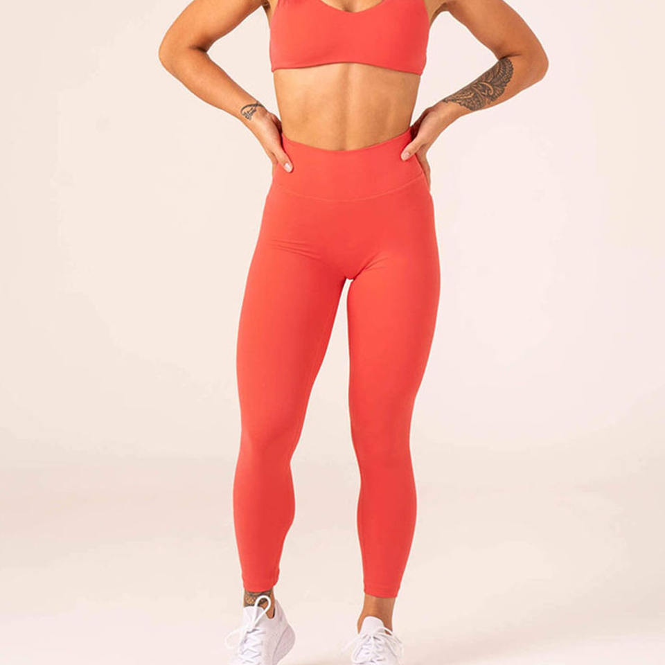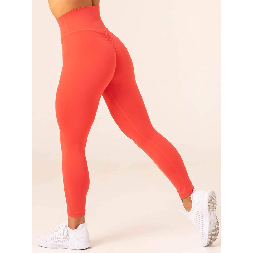 Leggings taille haute en V froncés avec logo personnalisé Watermelon NKD, ceinture arrière profilée, respirants, séchage rapide, extensibles dans quatre directions