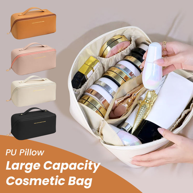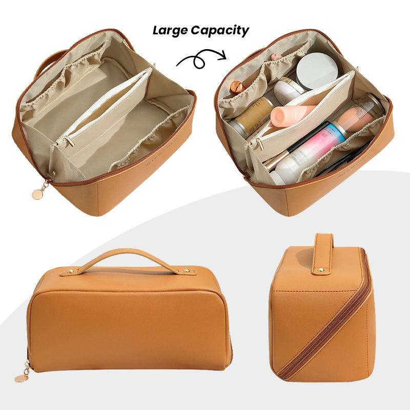 Trousse de maquillage en cuir PU étanche avec logo personnalisé Trousse de toilette Trousse de maquillage de voyage Brosse multifonctionnelle Sac cosmétique