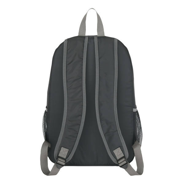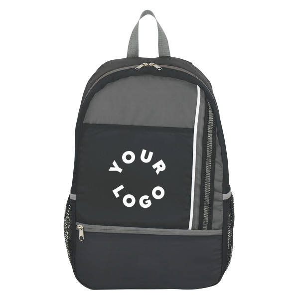 Sac à dos de voyage et scolaire en polyester imperméable et durable avec logo personnalisé, idéal pour le sport, les activités de plein air, les étudiants, les cadeaux, les événements, et la promotion par sérigraphie.