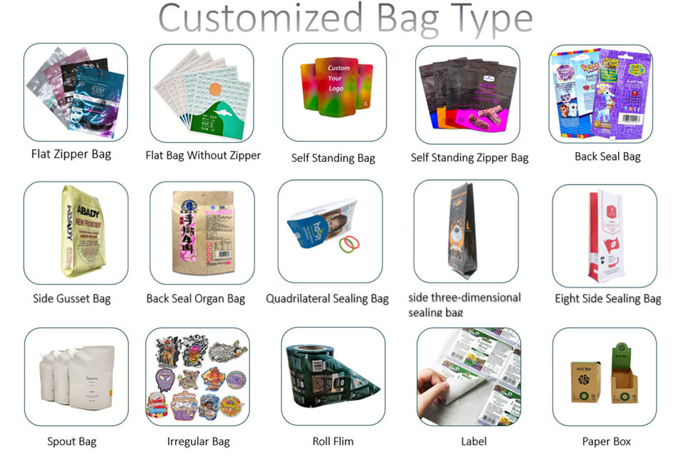 PET/VMPET/PE, Aluminium, BOPP, Cpe, EVA, PEHD, LDPE, LLDPE, MOPP, Mylar, Nylon, Opp, PE, Polyéthylène, PET, Pp, tissu tissé pp, PVC, Tissé, VMPETStructure Matérielle