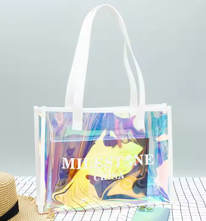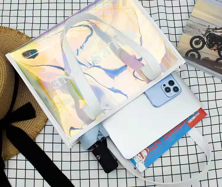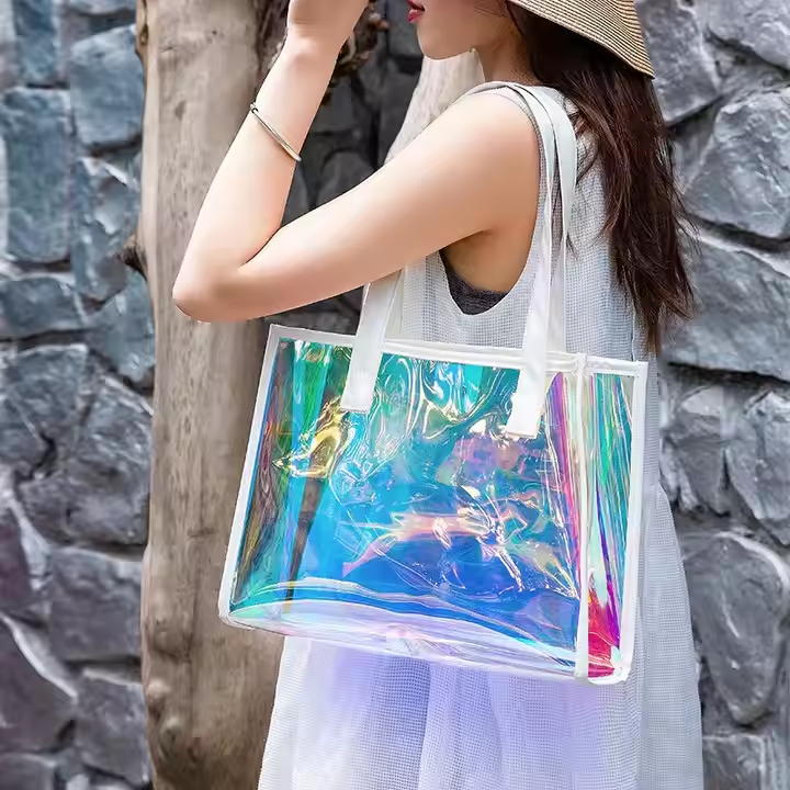 Sac fourre-tout en PVC personnalisé avec logo, imperméable, jaune vert néon, style bonbon, pour la plage, avec poignée en nylon et fermeture à boucle, pour les sports de plein air