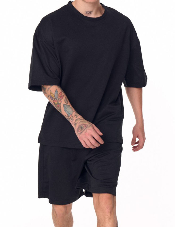 Shorts et T-shirts pour hommes avec logo personnalisé, teinture cirée, délavés, col étroit, style mode, coupe oversize, vintage