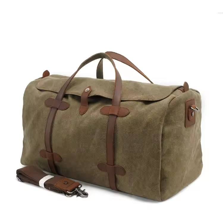Sac fourre-tout en toile cirée avec logo personnalisé Sac de week-end polochon en cuir imperméable de grande capacité à la mode avec sangle en cuir et fermeture éclair