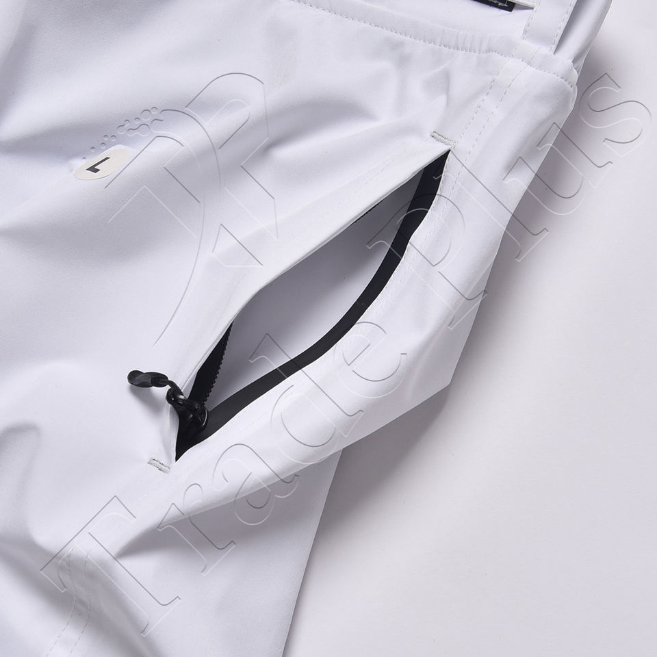 Pantalon cargo blanc avec logo personnalisé, ceinture réglable, fermeture éclair de ventilation sur le devant et bas ajustables