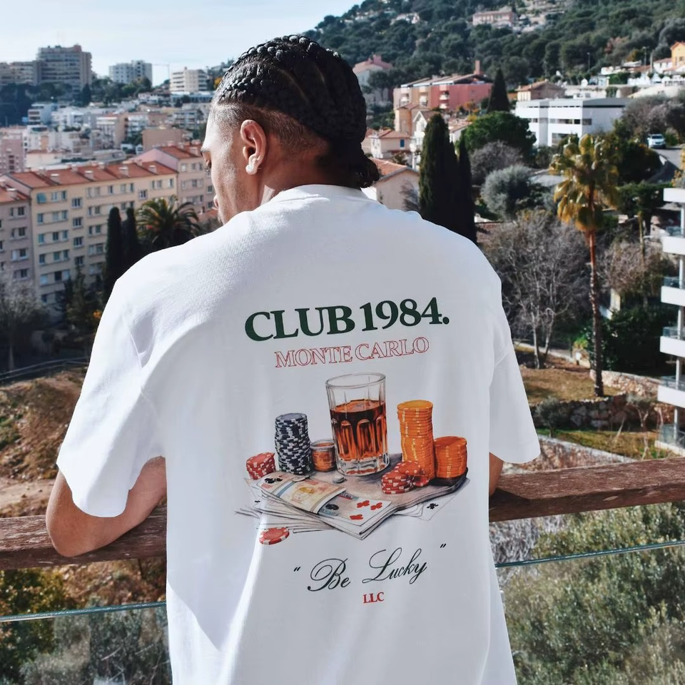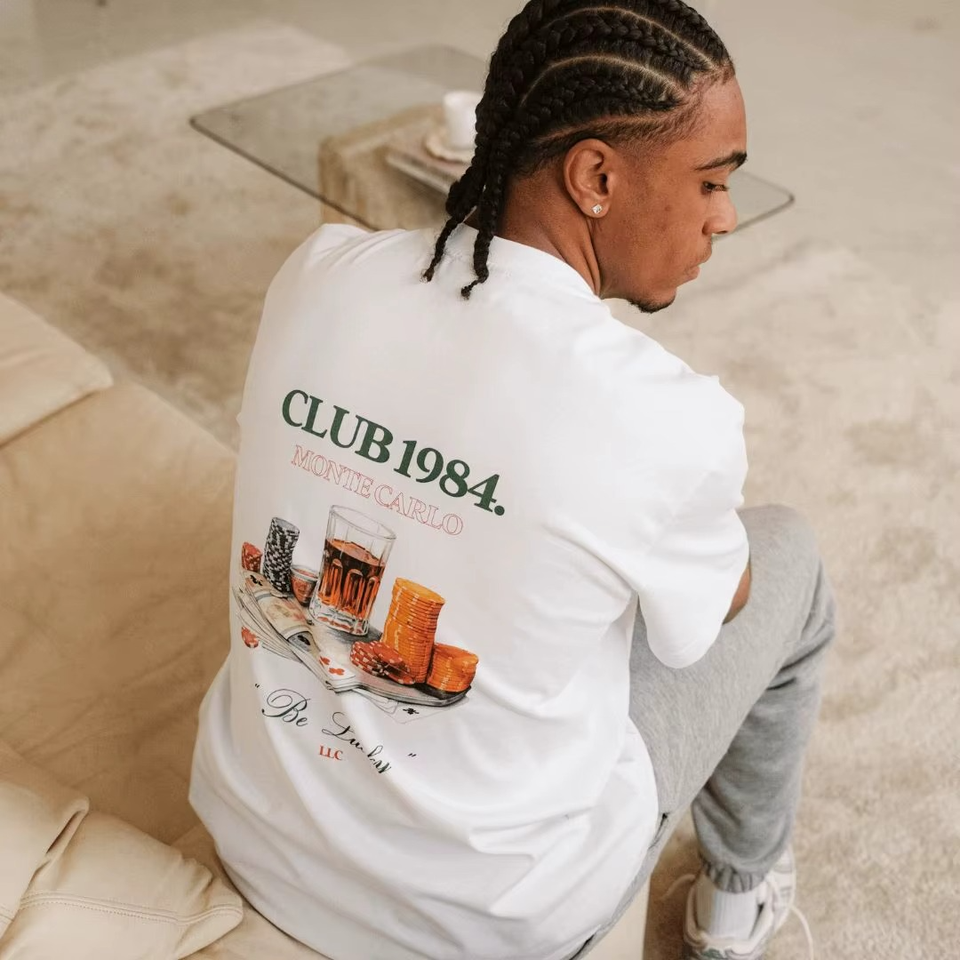 Logo personnalisé blanc surdimensionné graphique t-shirt hommes Style Monte Carlo imprimé coton t-shirt Vintage mode Streetwear haut décontracté
