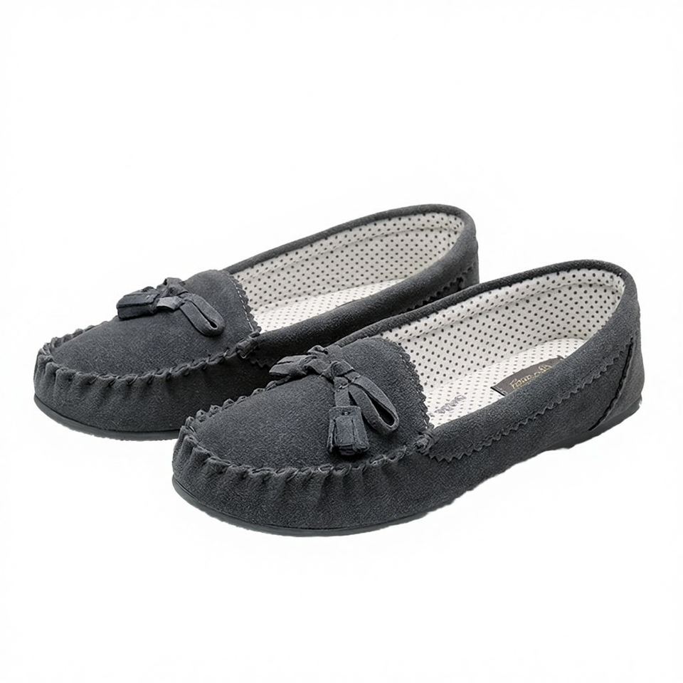 Mocassins en daim de vache à semelle souple, à bout fermé, antidérapants, personnalisés avec logo, vente en gros, pour femmes, automne/printemps