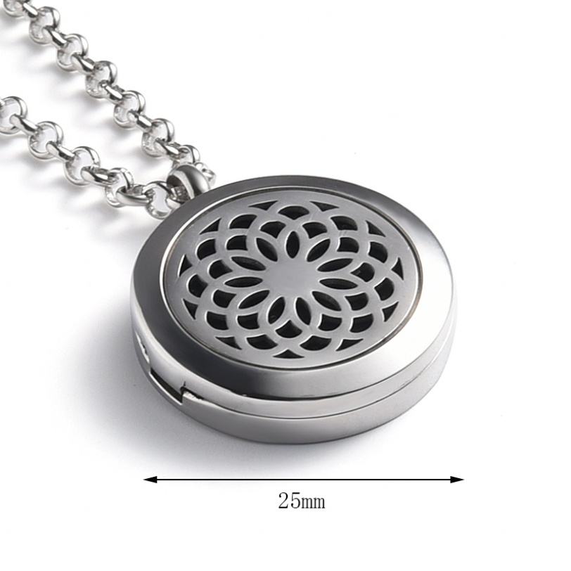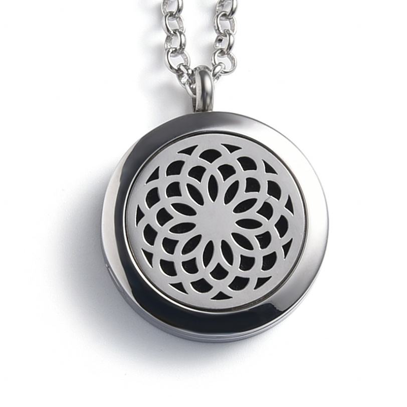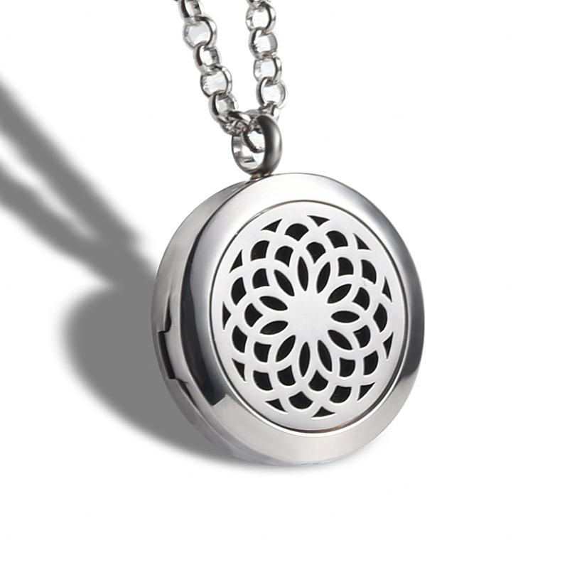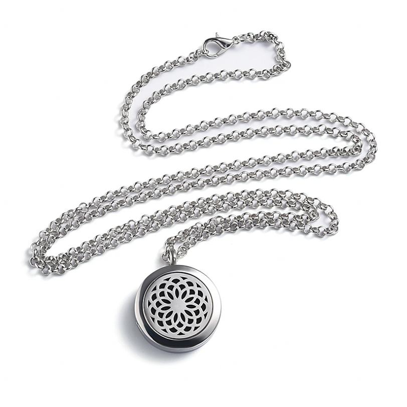 Collier diffuseur d'huiles essentielles en argent avec logo personnalisé, motif floral, vente en gros
