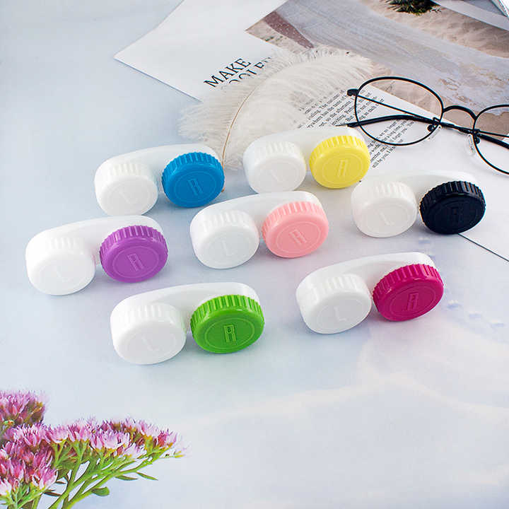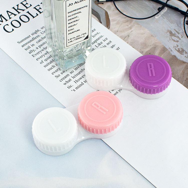 Logo personnalisé Vente en gros Étui pour lentilles de contact transparent portable Étui d'entretien pour lentilles bicolore distinguer à gauche et à droite