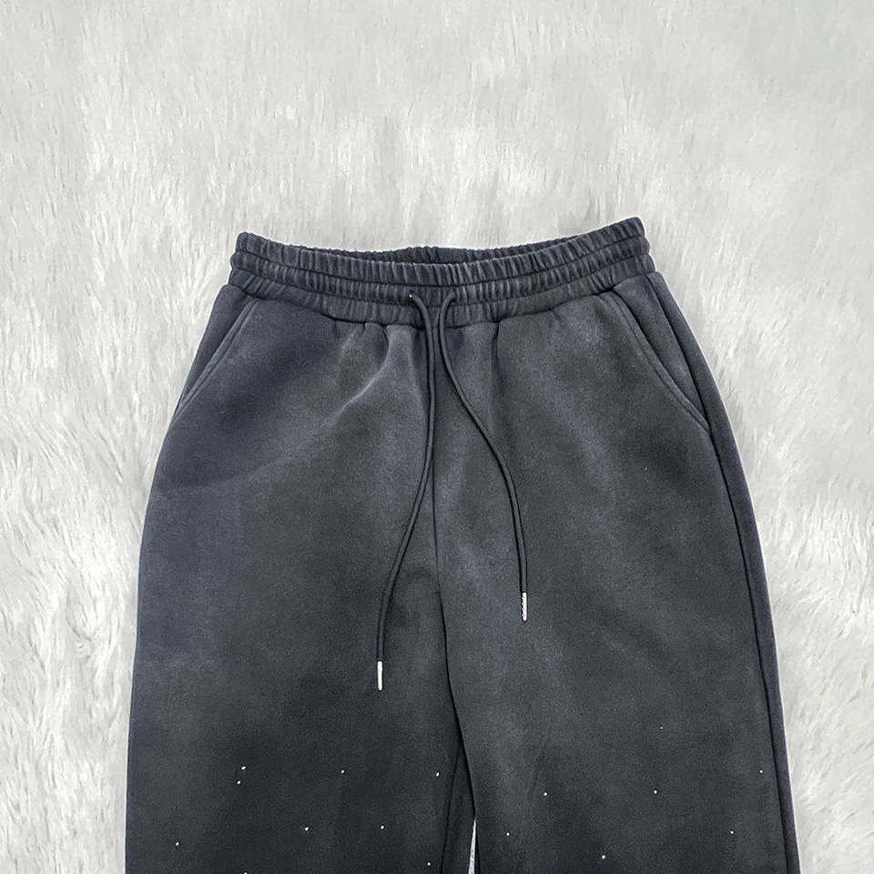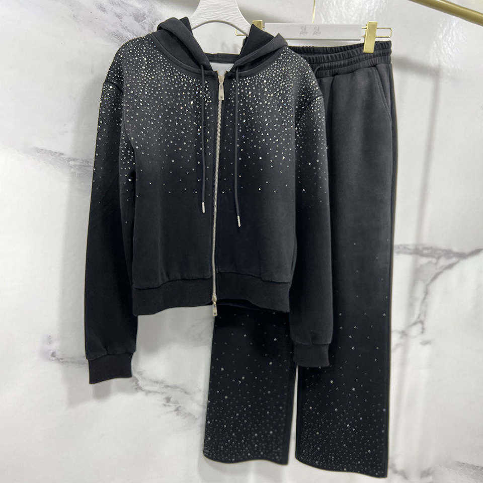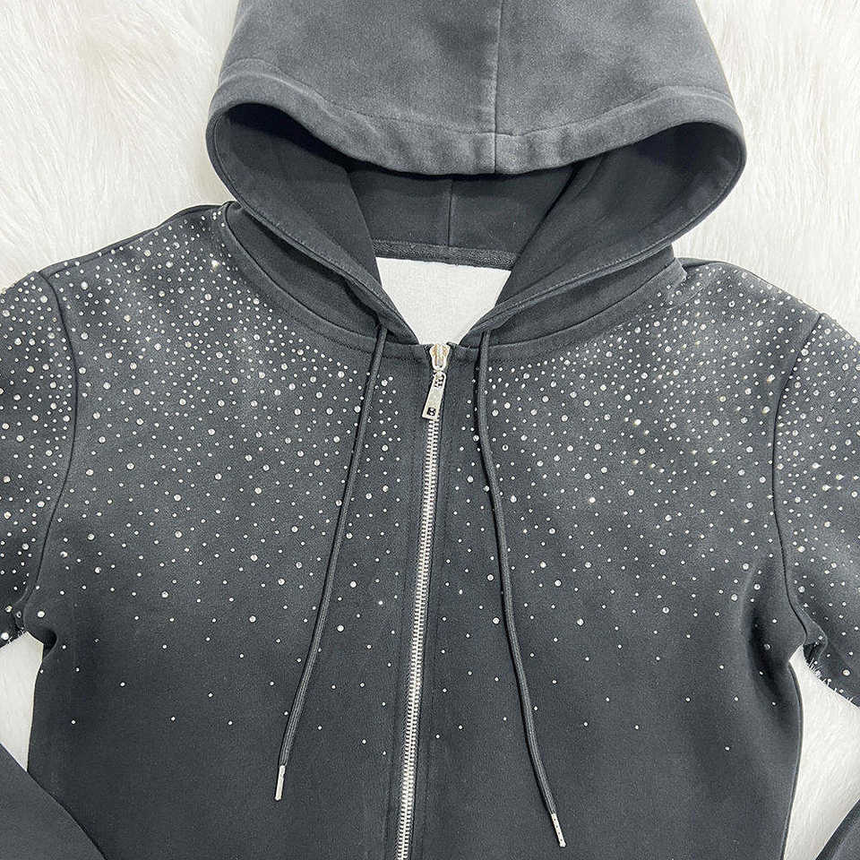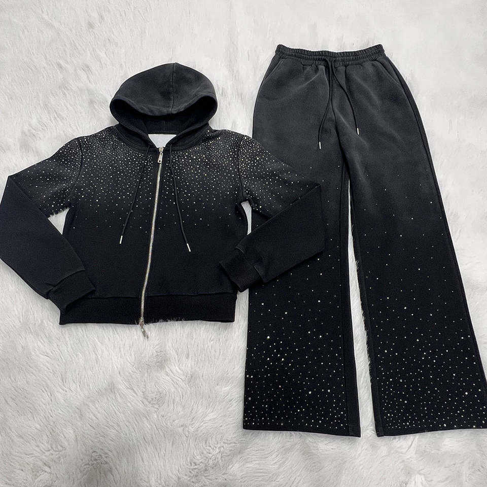 Ensemble de survêtement deux pièces pour homme avec logo personnalisé, décoré de strass, sweat à capuche à cordon et pantalon de jogging en polaire unie pour l'hiver – Vente en gros