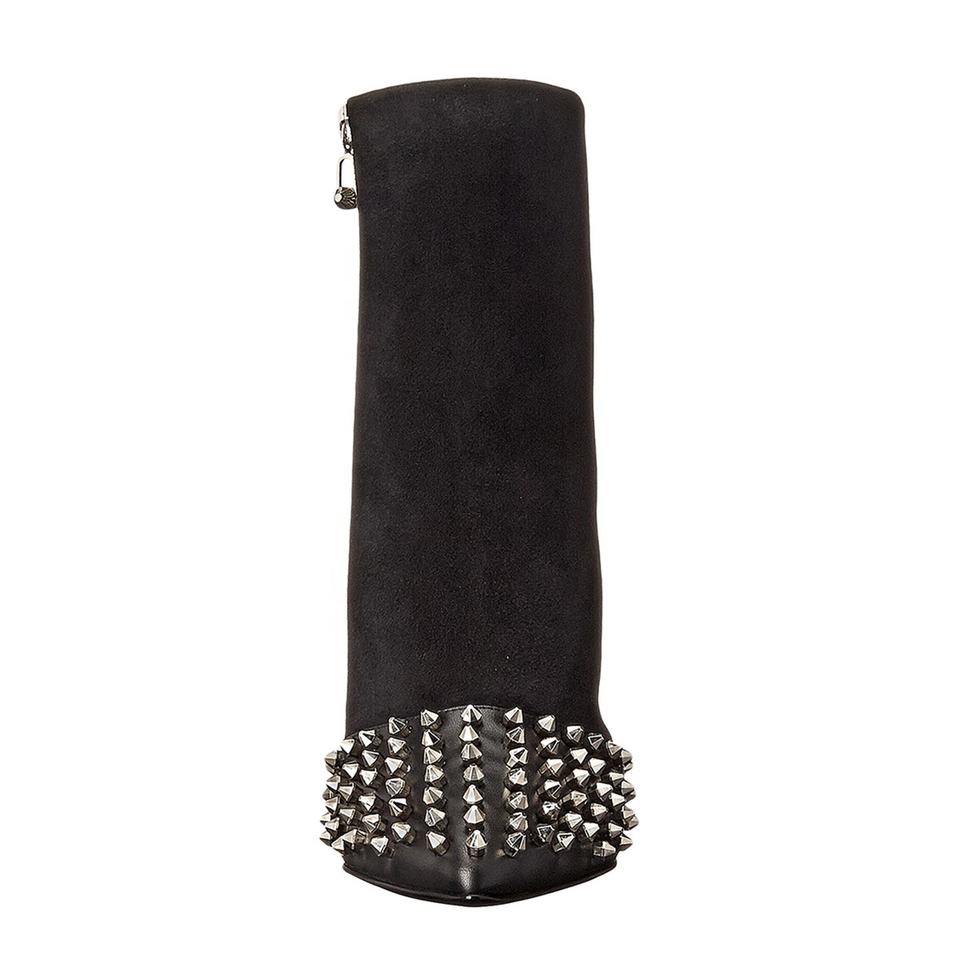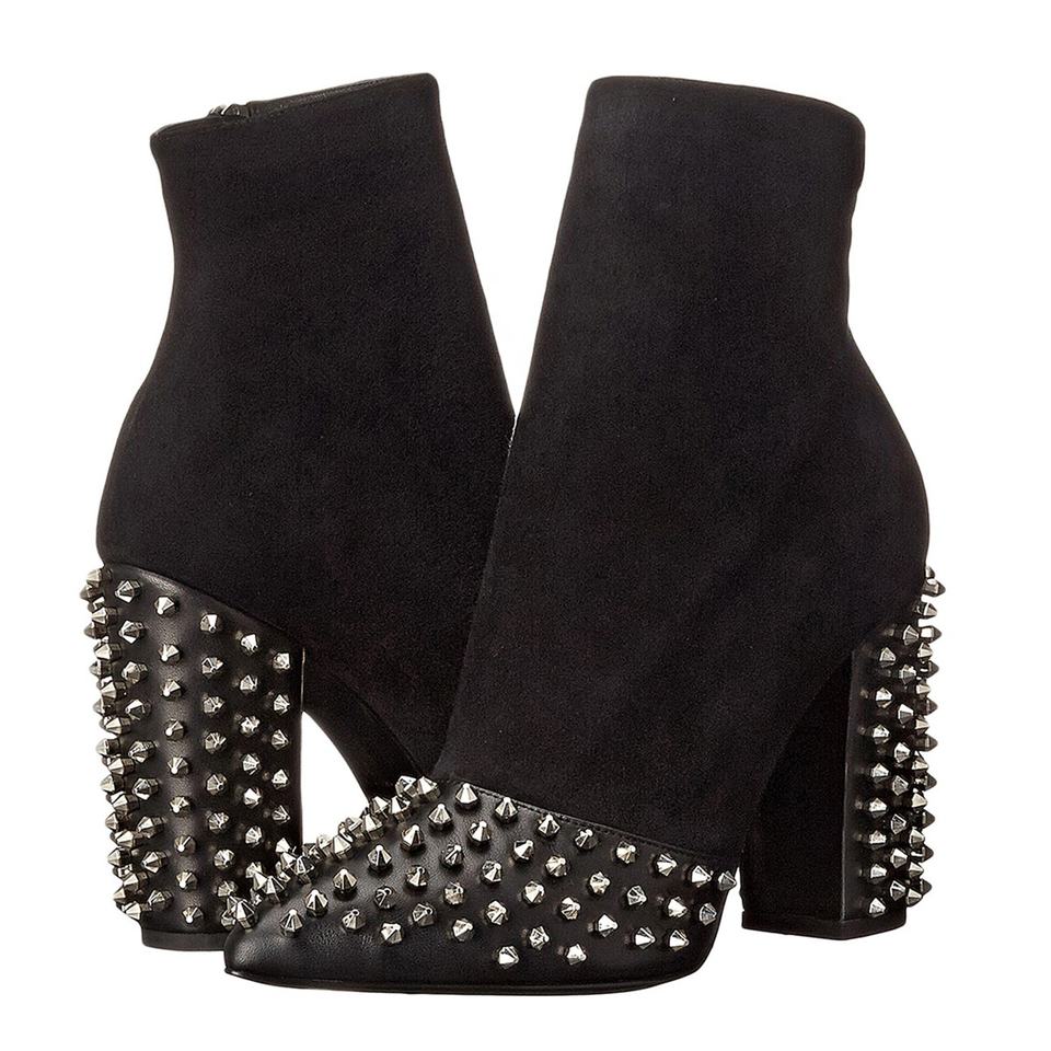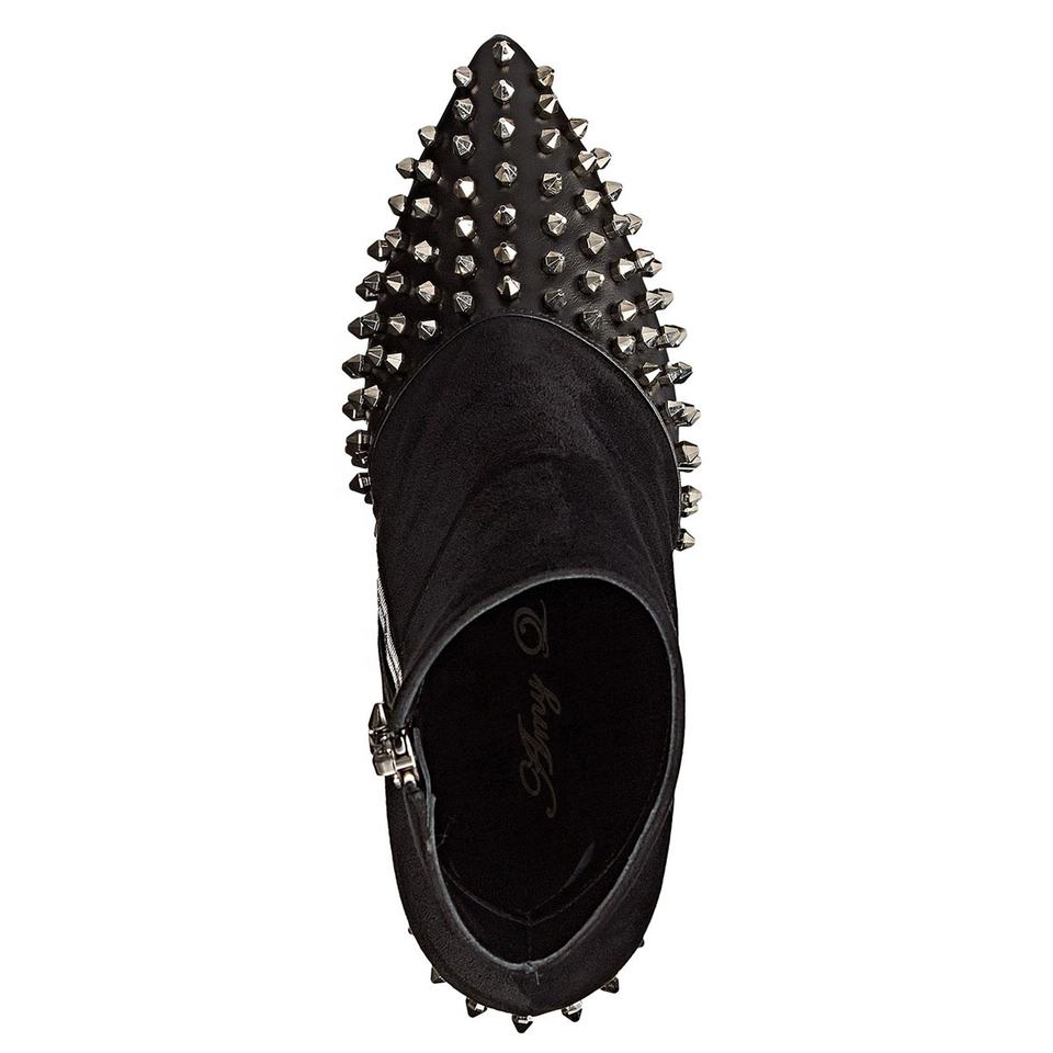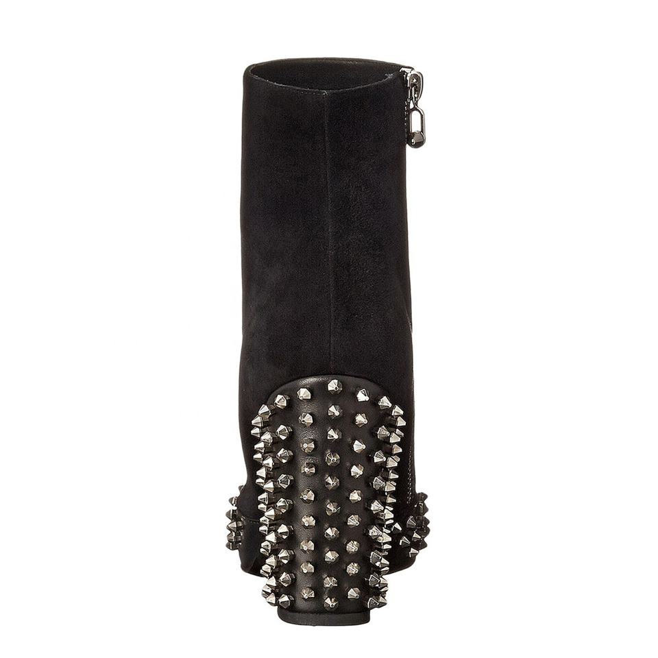 Bottes courtes à talons épais en daim souple pour femme, avec logo personnalisé, rivets et clous, coupe large taille 46, pour grandes pointures