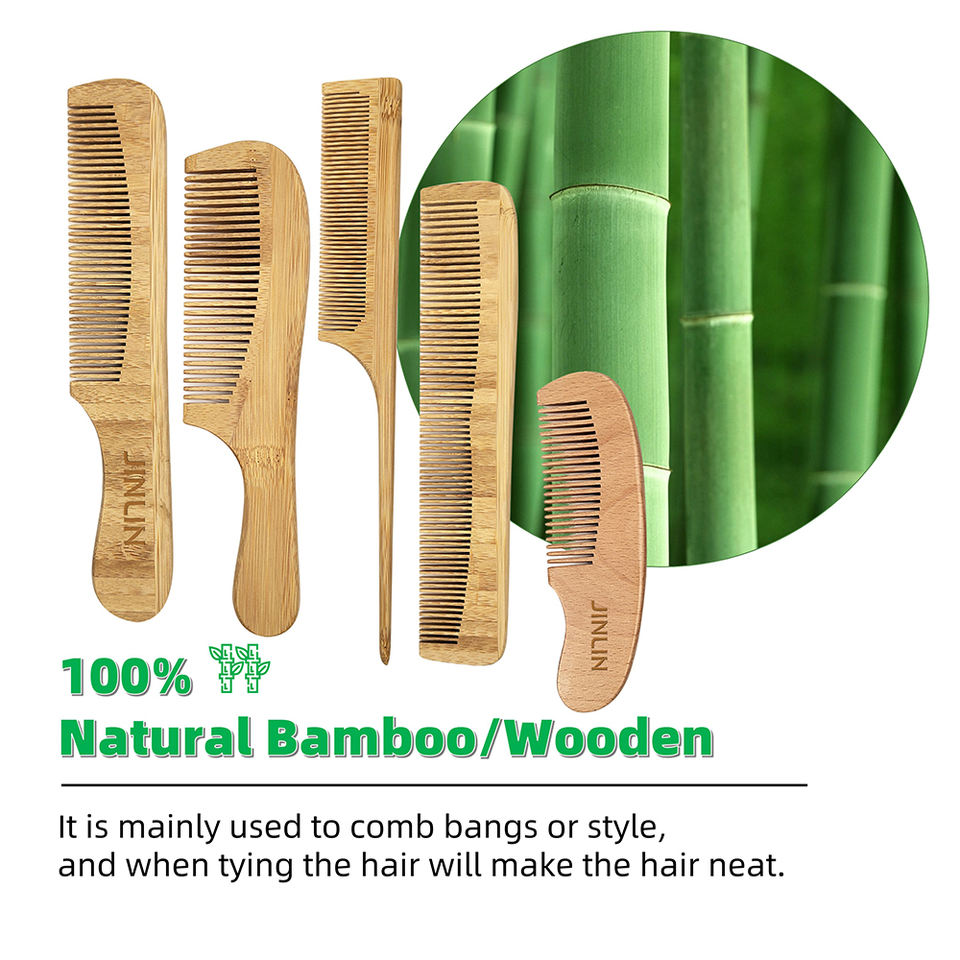Logo personnalisé large dent Afro barbe pêche bois bambou cuir chevelu brosse à cheveux et peigne ensembles pour la maison voyage hôtel
