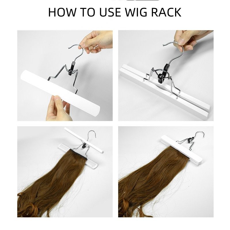 Logo personnalisé perruque extension de cheveux noir blanc cintre en bois avec crochet en métal Clip sac personnalisé extension de cheveux sac et cintre