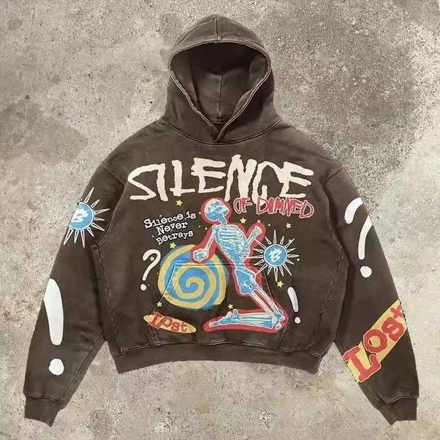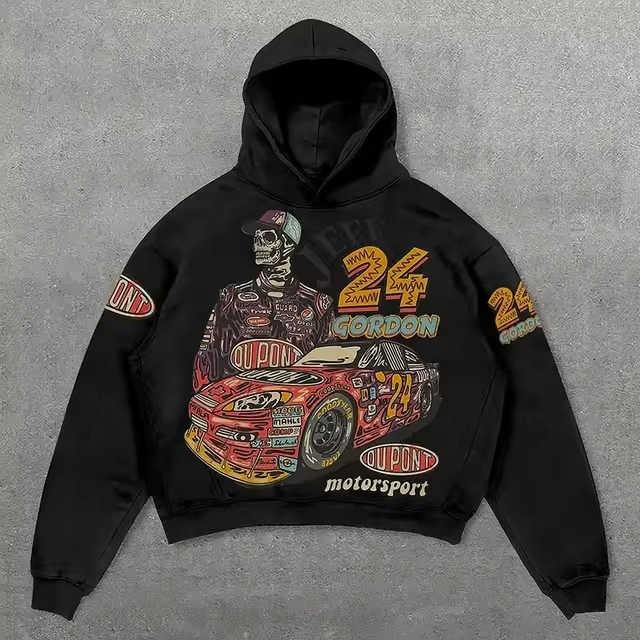 Sweat à capuche oversize décontracté en molleton français 100% coton biologique, lavage à l'acide, impression graphique, logo personnalisé, hiver
