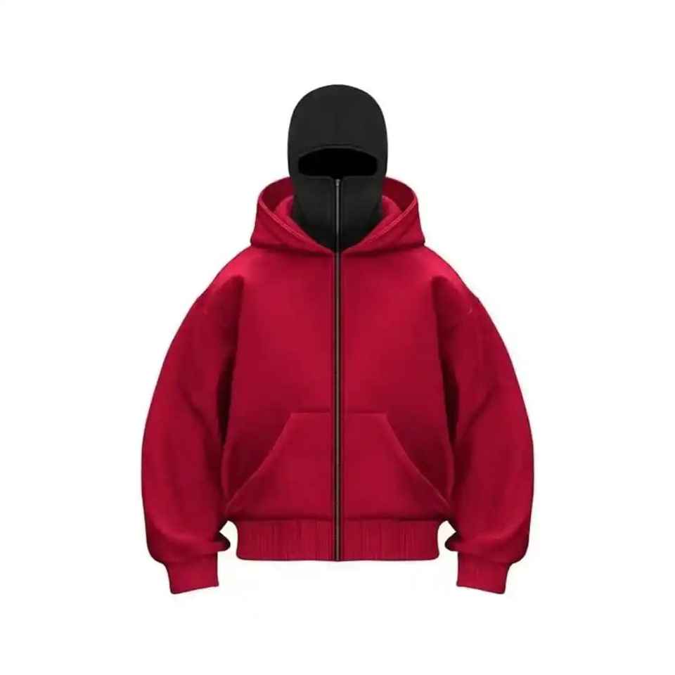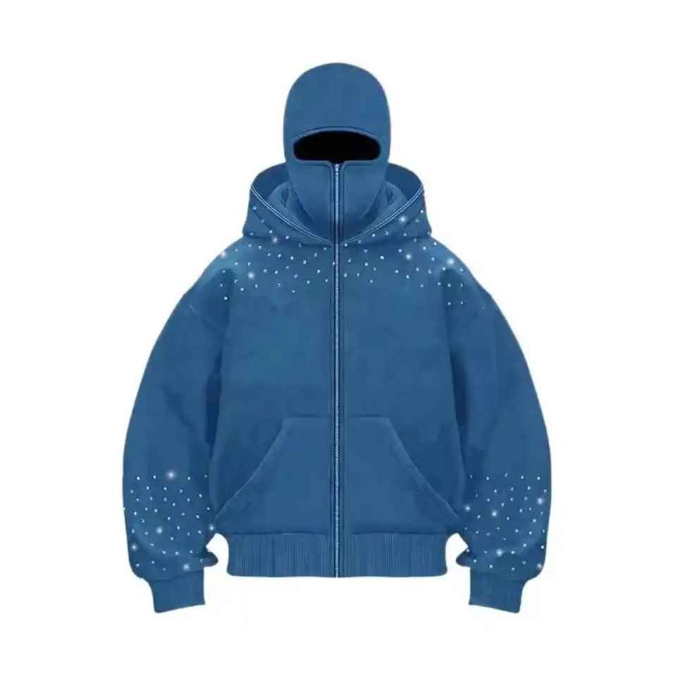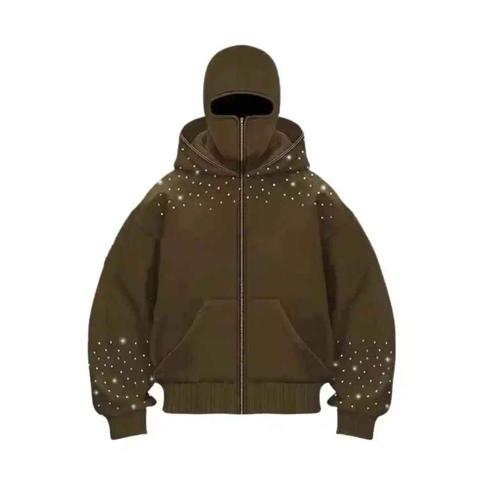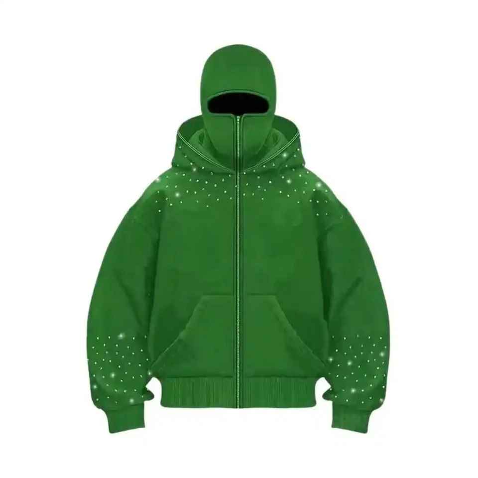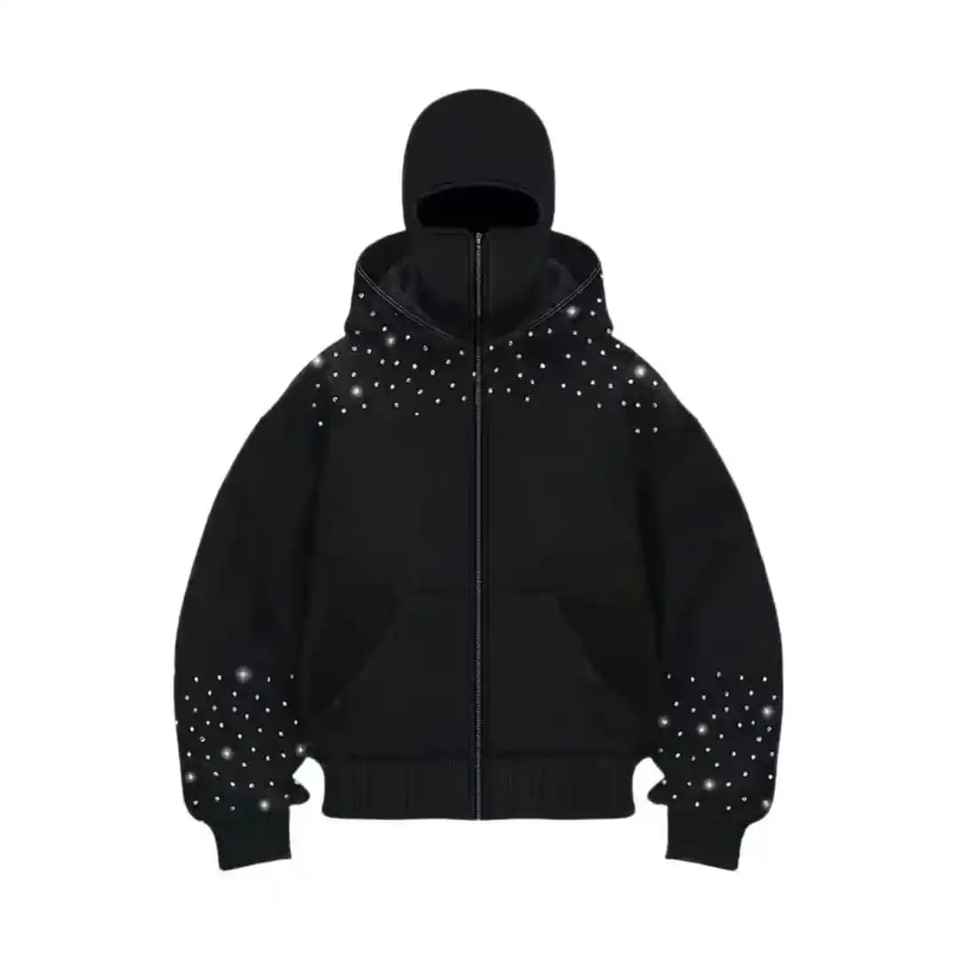 Cagoule de ski intégrale zippée pour homme, personnalisable avec logo, en polaire de coton, style ninja, ornée de strass, coupe oversize et épaisse