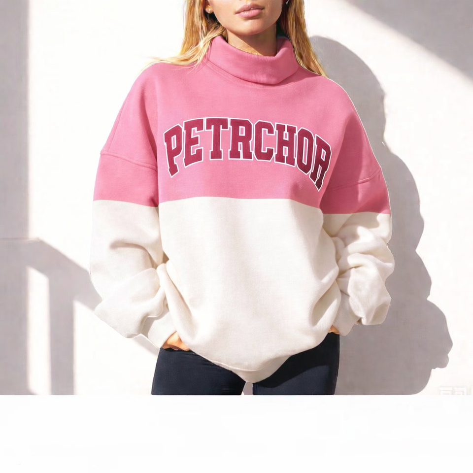 Pull molletonné décontracté surdimensionné pour femme, col montant brodé, manches longues, haute qualité, nouveau modèle hiver, avec logo personnalisé et devant structuré
