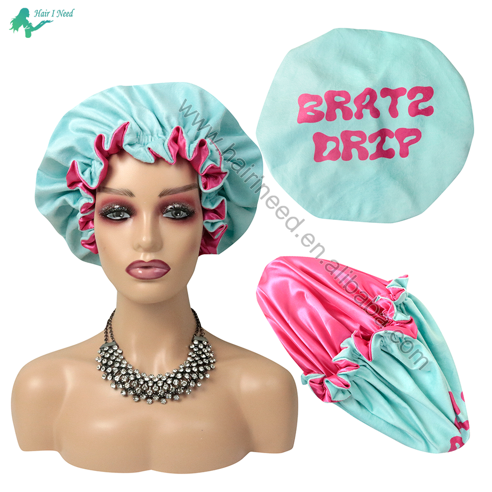 Custom Logo Winter Warm Bonnet Hat Women Velvet Hair Bonnets Double Layer Sleep Bonnet