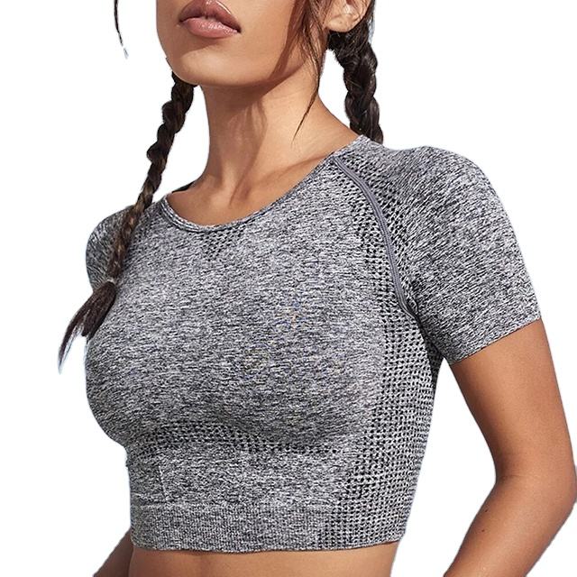 Logo personnalisé femmes Gym à manches courtes respirant athlétique Croptop filles entraînement Jogging coton ample haut court T-Shirt à col rond