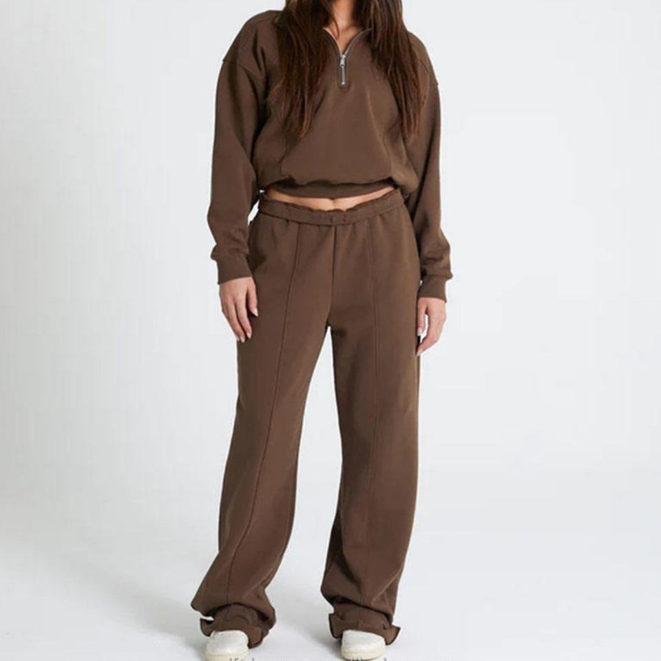 Ensemble survêtement personnalisé avec logo pour femme, sweat à capuche et pantalon de survêtement à jambes droites, molleton à demi-zip