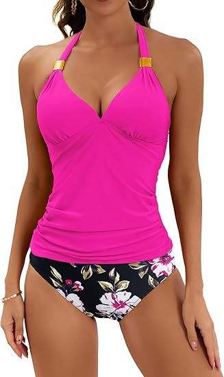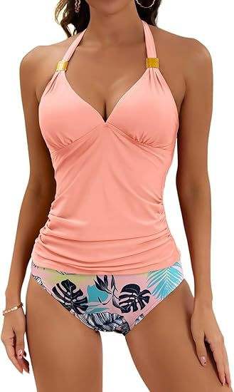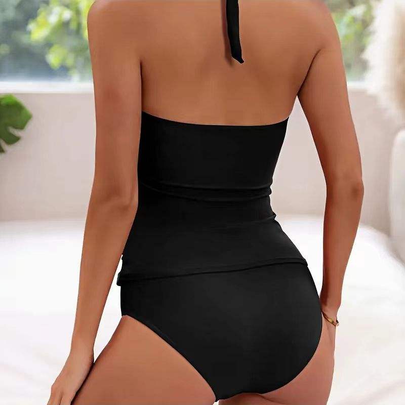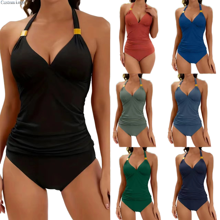 Maillot de bain deux pièces pour femme avec logo personnalisé, tankini dos nu, effet amincissant et contrôle du ventre, col en V et short