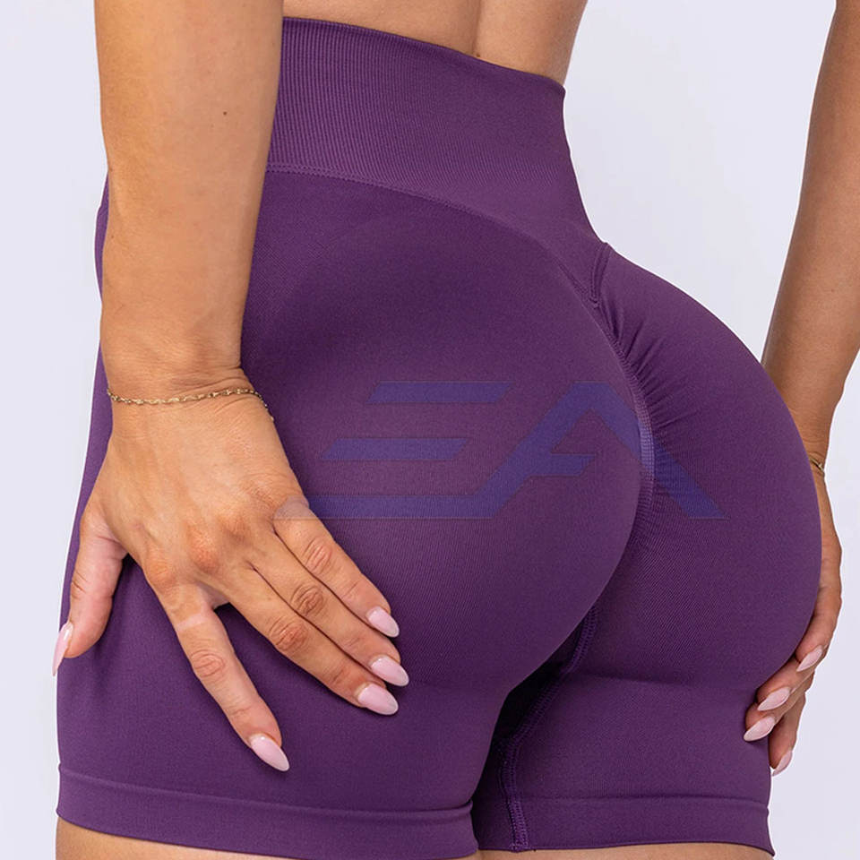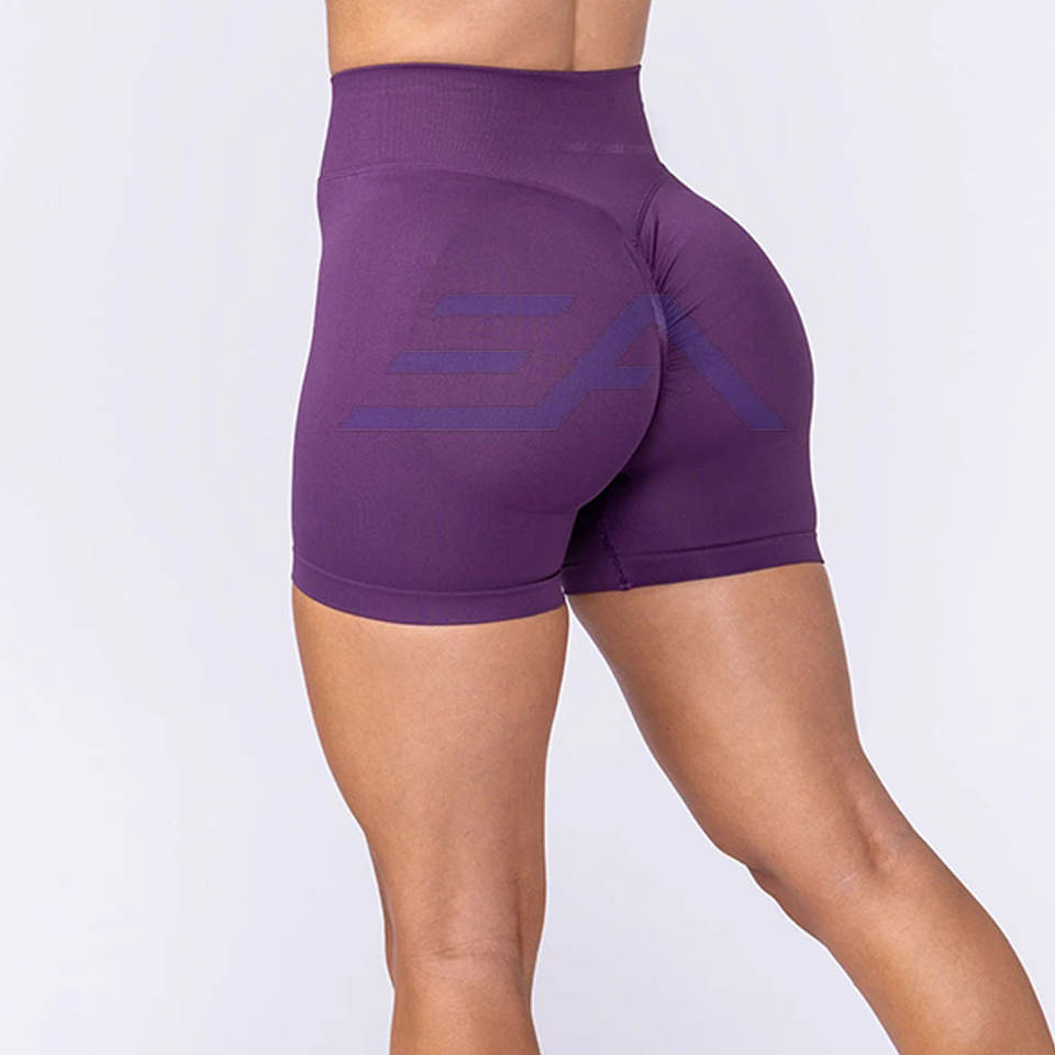 Shorts de sport pour femmes à taille haute respirants avec logo personnalisé, fabriqués en spandex/polyester, taille élastique