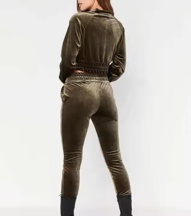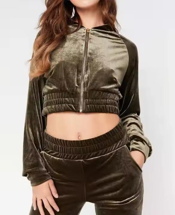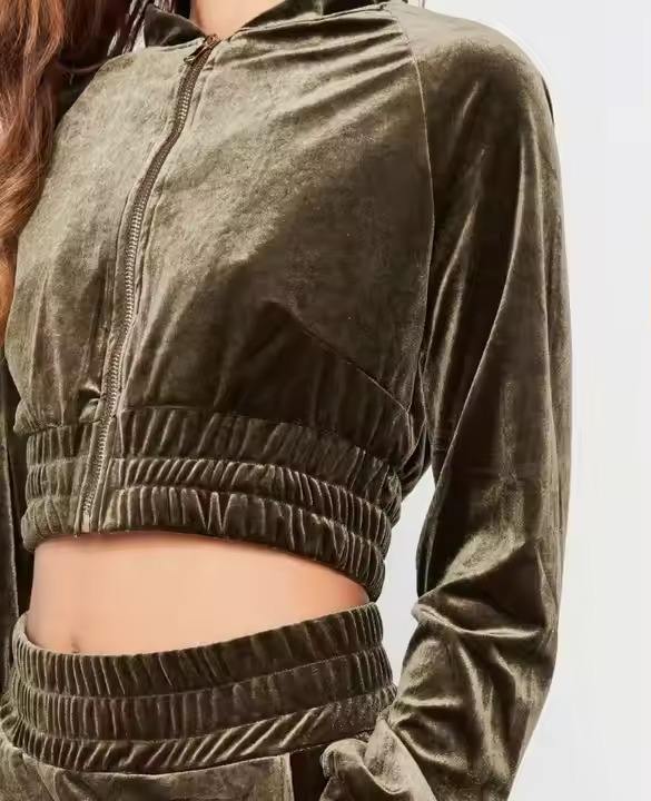Ensemble de survêtement en velours pour femme avec logo personnalisé, veste zippée et pantalon évasé, sweat à capuche et jogging, 2 pièces, vêtements en velours pour femme