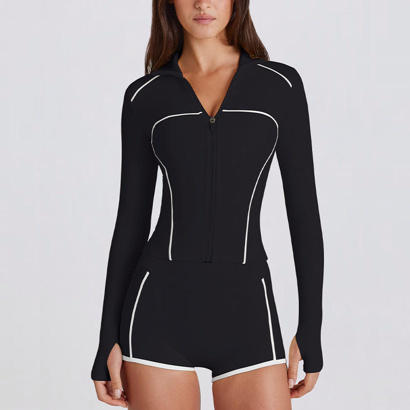 Veste de sport zippée pour femme avec logo personnalisé, blocage de couleur, col polo, vêtements de yoga actifs, haut léger avec trou pour le pouce