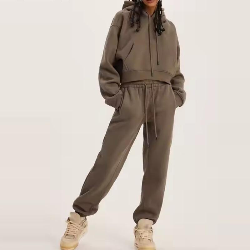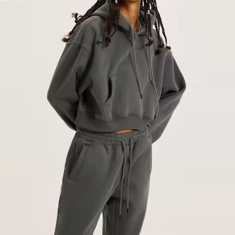 Ensemble de sweat à capuche de sport d'automne pour femmes avec logo personnalisé respirant chaud épais hiver polaire survêtements en éponge française logo sexy pour adultes