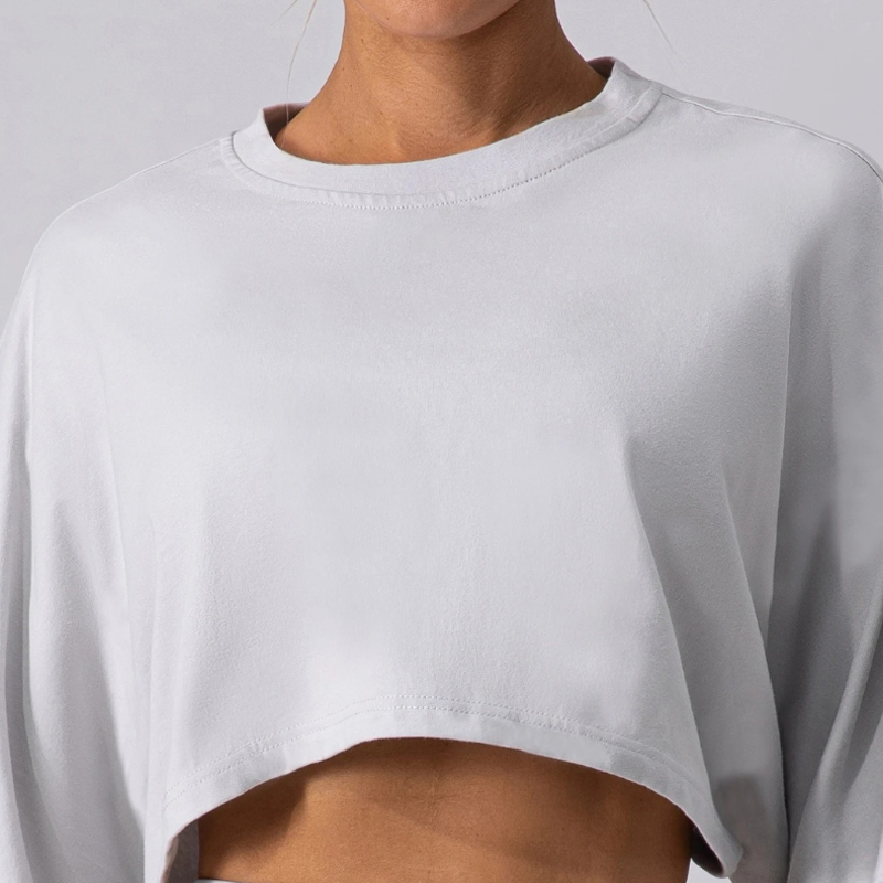 Logo personnalisé femmes haut court à la mode surdimensionné à manches longues respirant T-Shirt recadrée débardeur pour femme