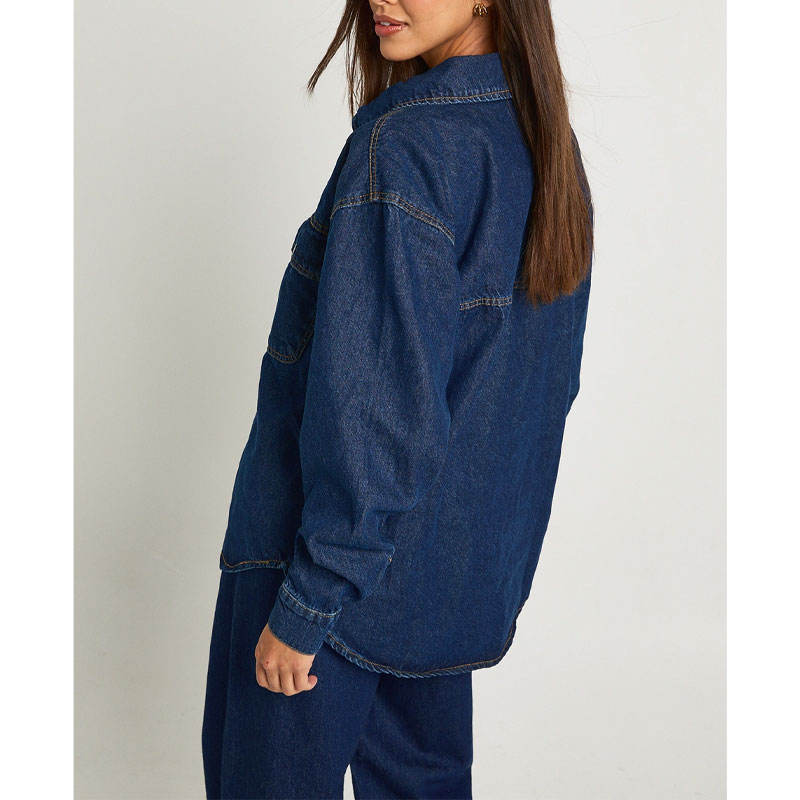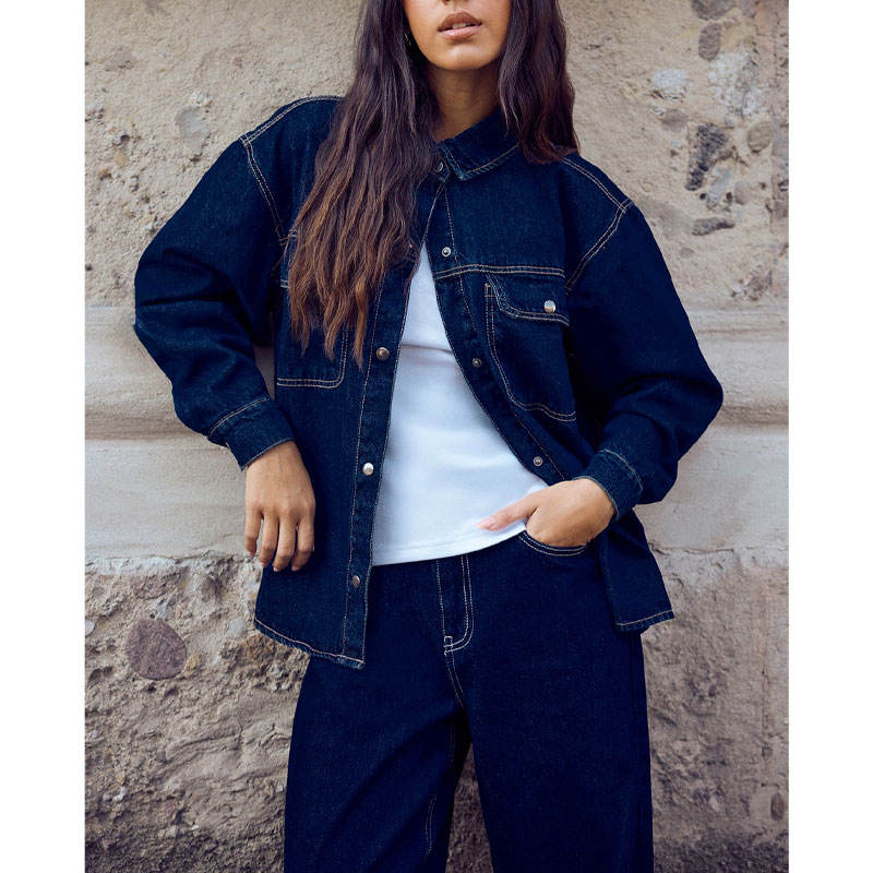 Veste en jean pour femmes avec logo personnalisé Manteau en jean bleu classique surdimensionné fabriqué en usine
