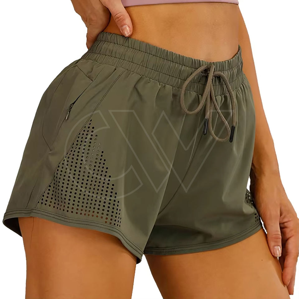 Custom Logo Women's High Drawstring Waist Breathable Loose Fit Side Mesh Splicing Double Layer Sport Shorts