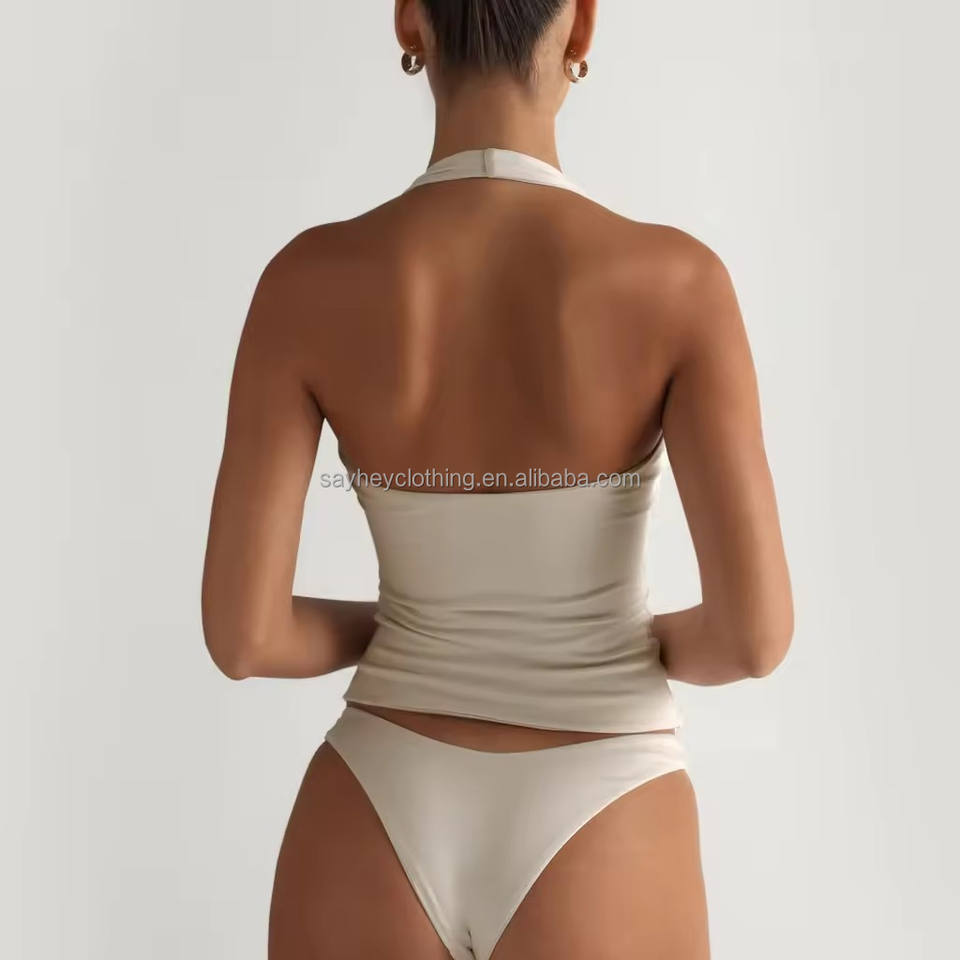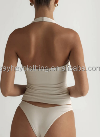Haut de sport pour femme avec logo personnalisé, rembourrage amovible, coupe ajustée, style halter, extensible, uni, idéal pour le yoga et l'entraînement
