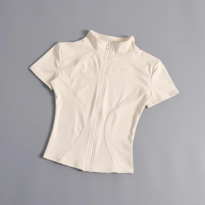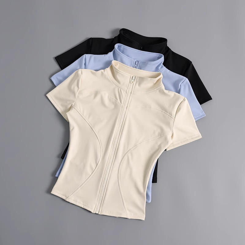 Vestes de sport zippées pour femmes avec logo personnalisé, douces et confortables, à manches courtes, ajustées, pour la course à pied, le fitness et le yoga