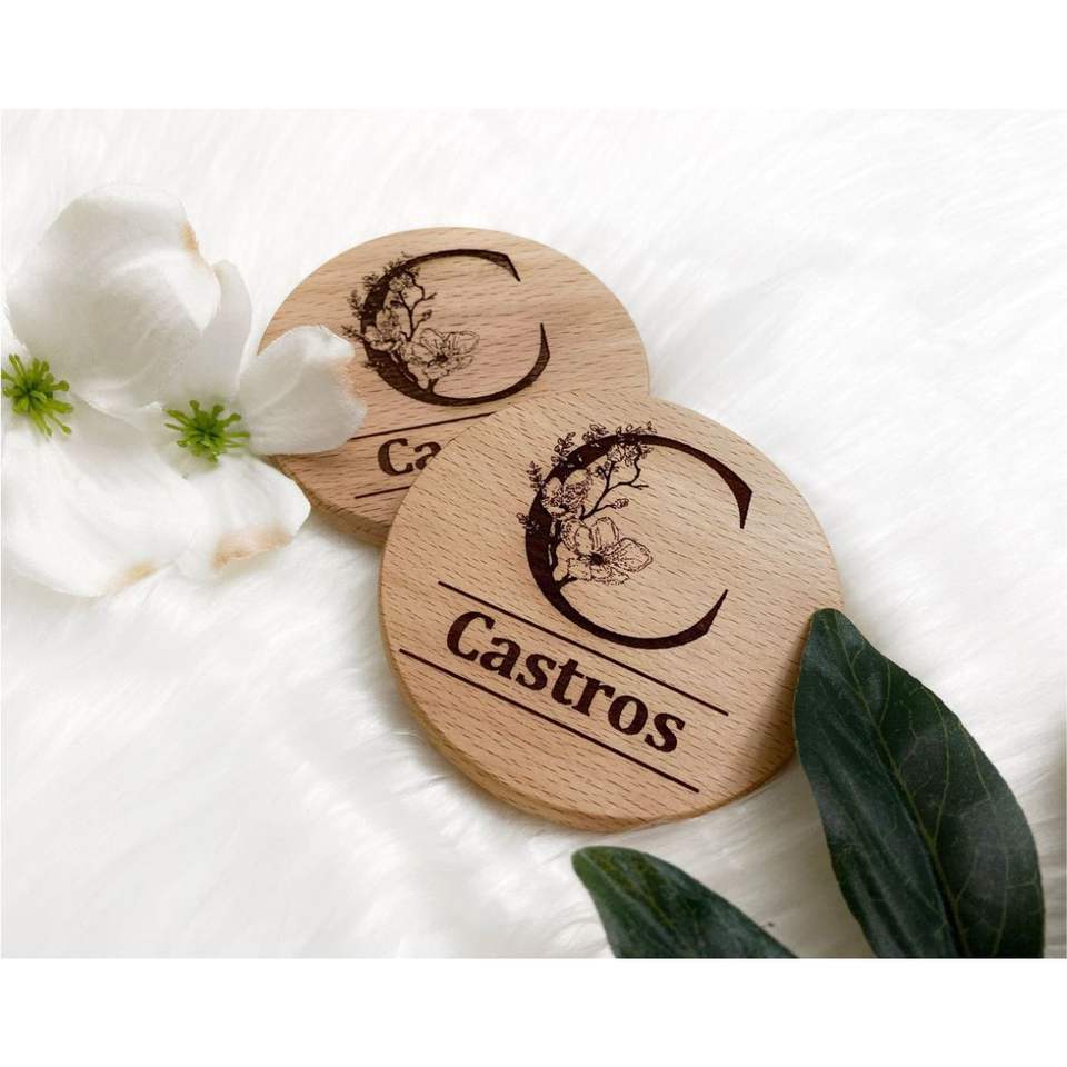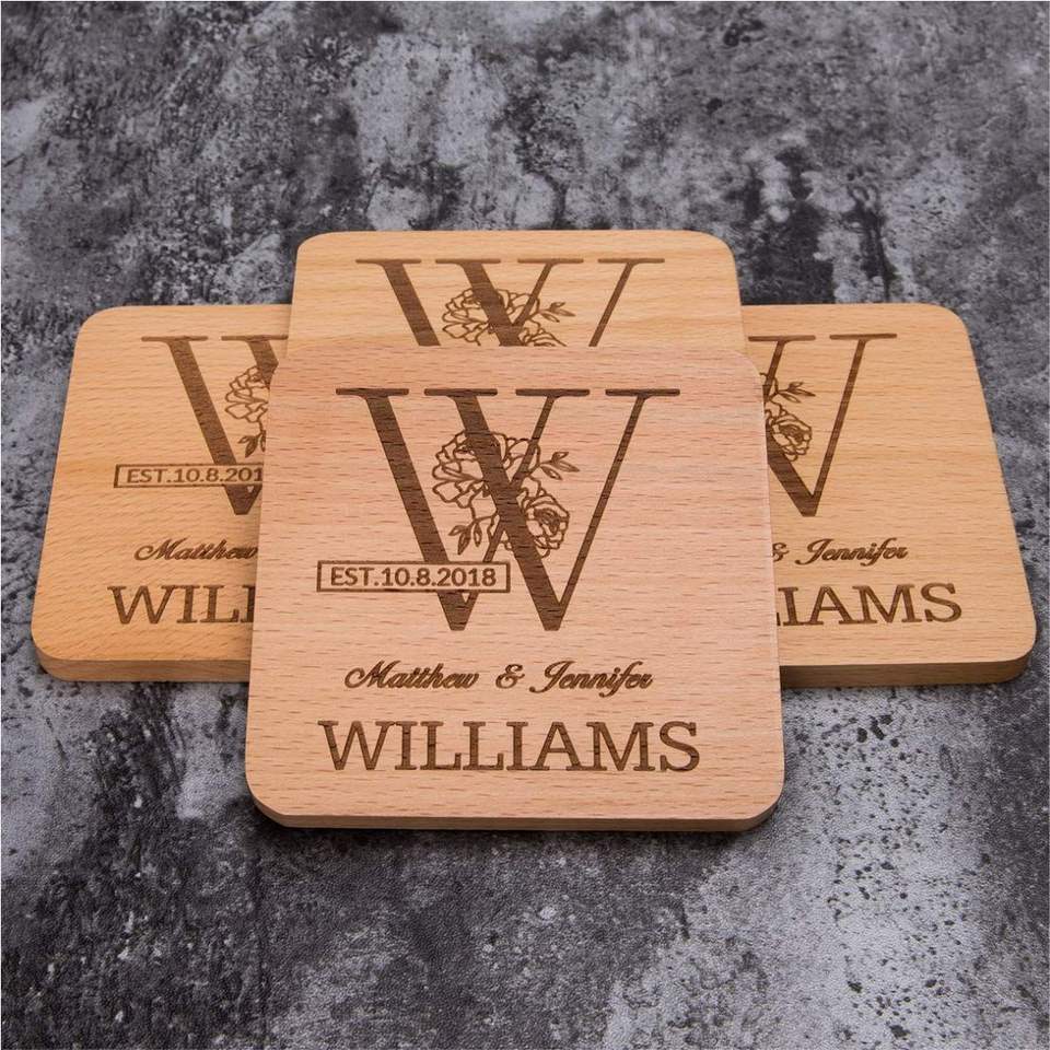 Ensemble de sous-verres en bois avec support, logo personnalisé, gravure au laser, sous-verres carrés en bois, vaisselle écologique, tapis de table, tapis à bière