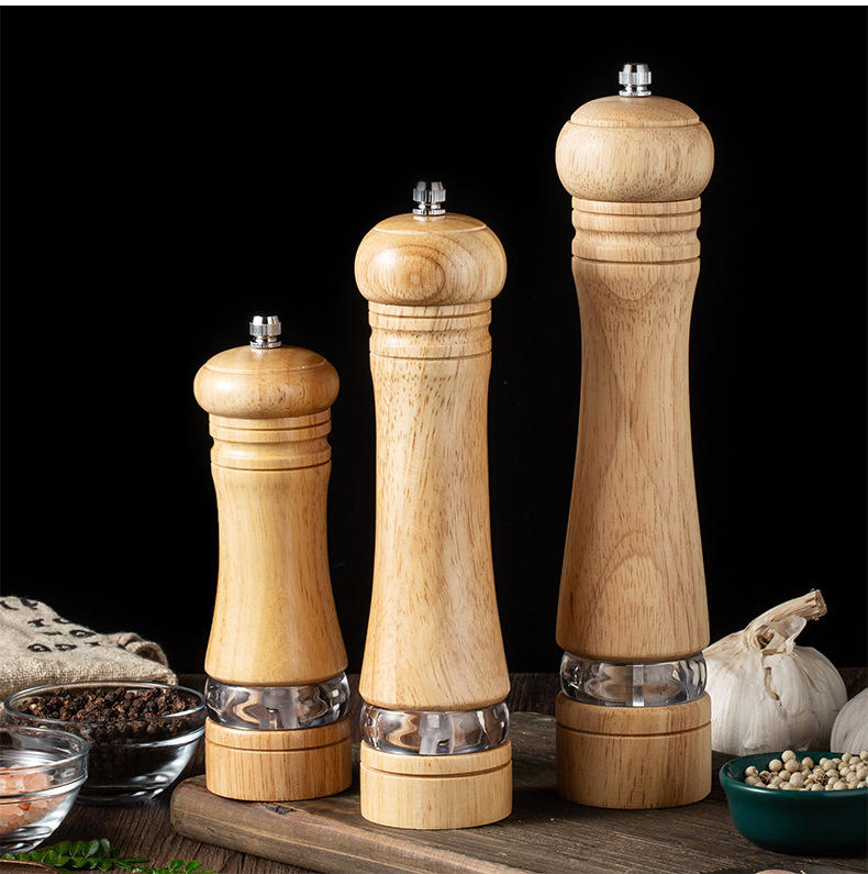 Custom Logo Wooden Salt and Pepper Mill Set Hand-Grinding Wooden Pepper Grinder for Kitchen Accessories