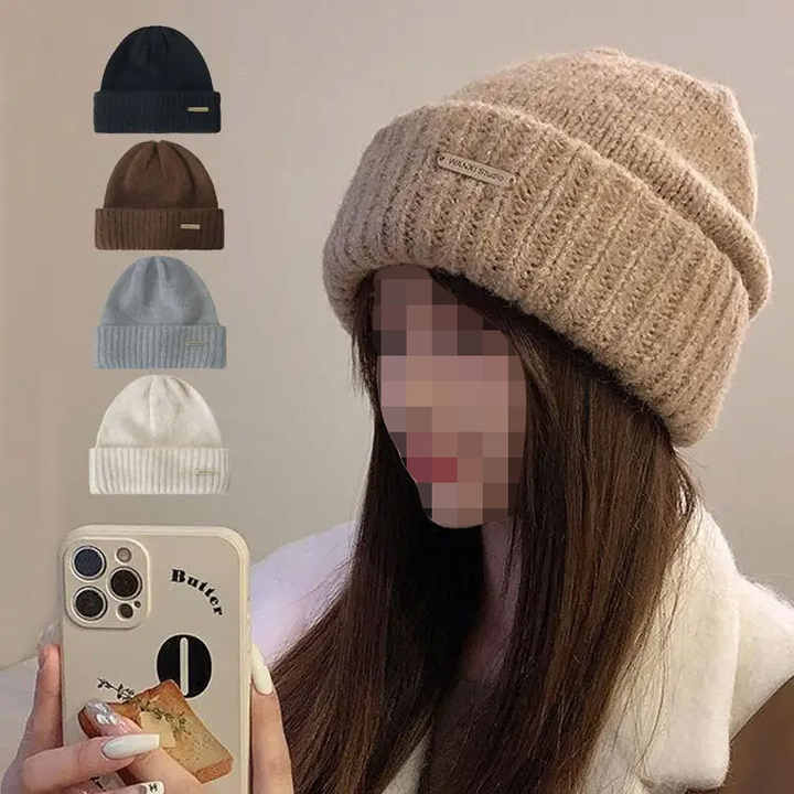 Bonnet en laine avec logo personnalisé bonnet en tricot chaud et ample et épais pour dames pour les voyages