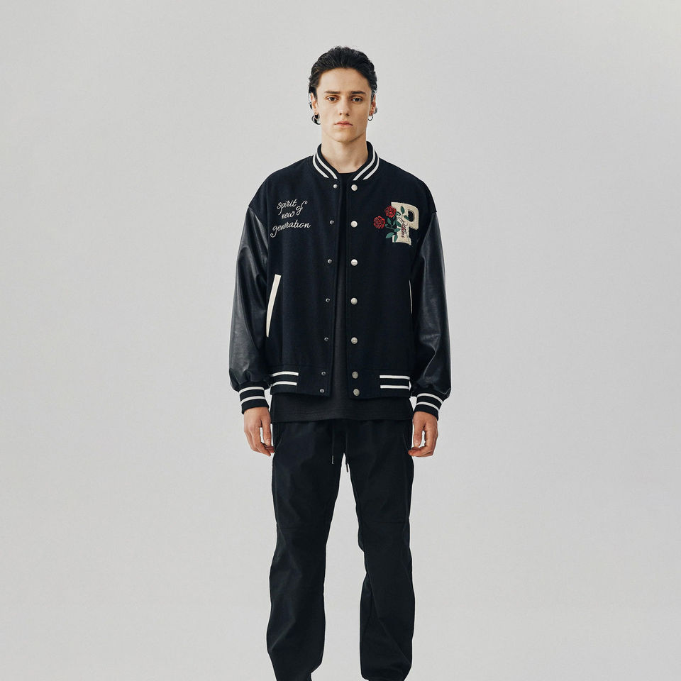 Veste universitaire Tealom pour homme, style urbain, décontractée, d'hiver, type baseball, bomber, unisexe, verte et blanche, avec lettrage, à capuche, 1 pièce